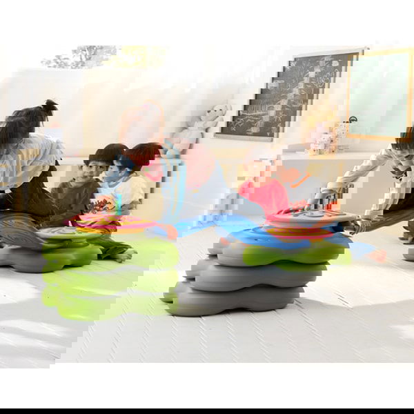 Bauen und Bewegen für Drinnen und Draußen … Balance und Sensorik auf verschiedenen Ebenen. Durch Übereinanderstapeln der grünen Inseln (max. 3 Stück) können Kinder die Höhe selbst bestimmen. Die Balancestege lassen sich leicht und absolut sicher in die Inseln einrasten. Die Oberflächen der Stege sind unterschiedlich für verschiedene Sensorwege, die gebogenen Stege können sowohl als Berg oder Tal eingesetzt werden. Eine Rutschfeste Sensoroberfläche auf den Inseln und Antirutschfüße am Boden erhöhen die Sicherheit. Die Waterlily kann im Innen- und Außenbereich eingesetzt werden (im Außenbereich jedoch nicht als Dauereinrichtung).