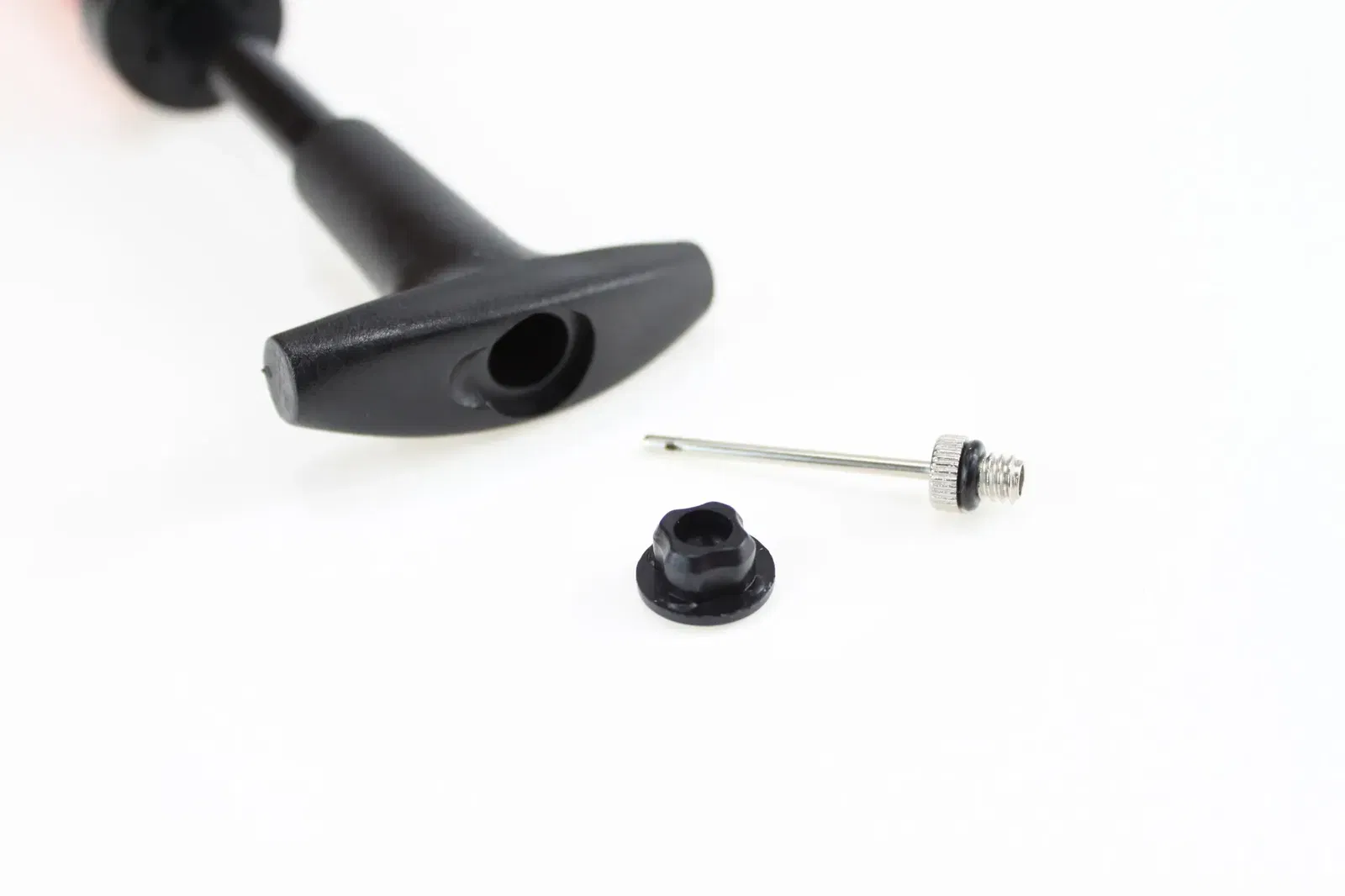 Außerdem ist die Pumpe so konzipiert, dass die Ventilnadel sicher im Griff verstaut werden kann. Dies verhindert nicht nur das Verlieren der Nadel, sondern minimiert auch die Verletzungsgefahr beim Transport – für eine sichere und unkomplizierte Handhabung.