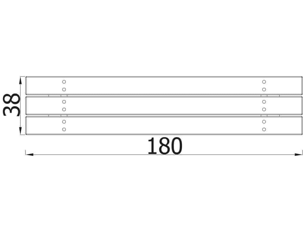 - Geräte-Abmessungen (L x B x H): 180 x 38 x 43 cm