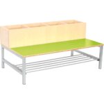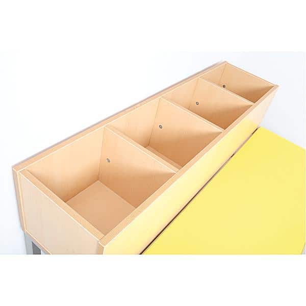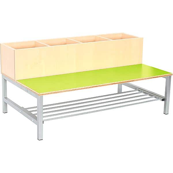 Entdecken Sie die vielseitige Bank mit Fächern Flexi 4, die ideal für Kindergärten und Spielräume geeignet ist. Diese hochwertige Sitzbank aus farbigem HPL-laminiertem Sperrholz (Stärke: 19 mm) bietet nicht nur eine bequeme Sitzgelegenheit, sondern auch praktischen Stauraum für Jacken, Schuhe und Spielzeug.