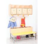 Zusätzlich können Sie zwischen zwei Breiten wählen: B 61,1 cm (für 2 Kinder) oder B 120 cm (für 4 Kinder). Die Schuhablage mit Gitterrost sorgt für Ordnung, und der Abstand zum Boden beträgt bei SH 26 cm 7,5 cm und bei SH 35 cm 12,5 cm. Auch die Rückenlehne verfügt über zwei oder vier Fächer (Innenmaß eines Fachs 27 x 27 cm), was die Funktionalität zusätzlich erhöht.
