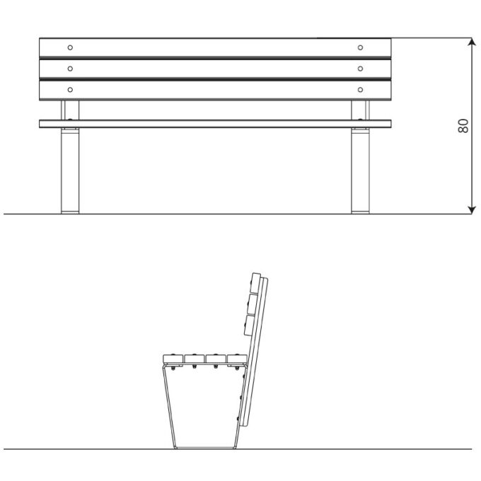 Technische Daten Bank mit Lehne aus Holzlatten PARK 0902-2 von Vinci Play