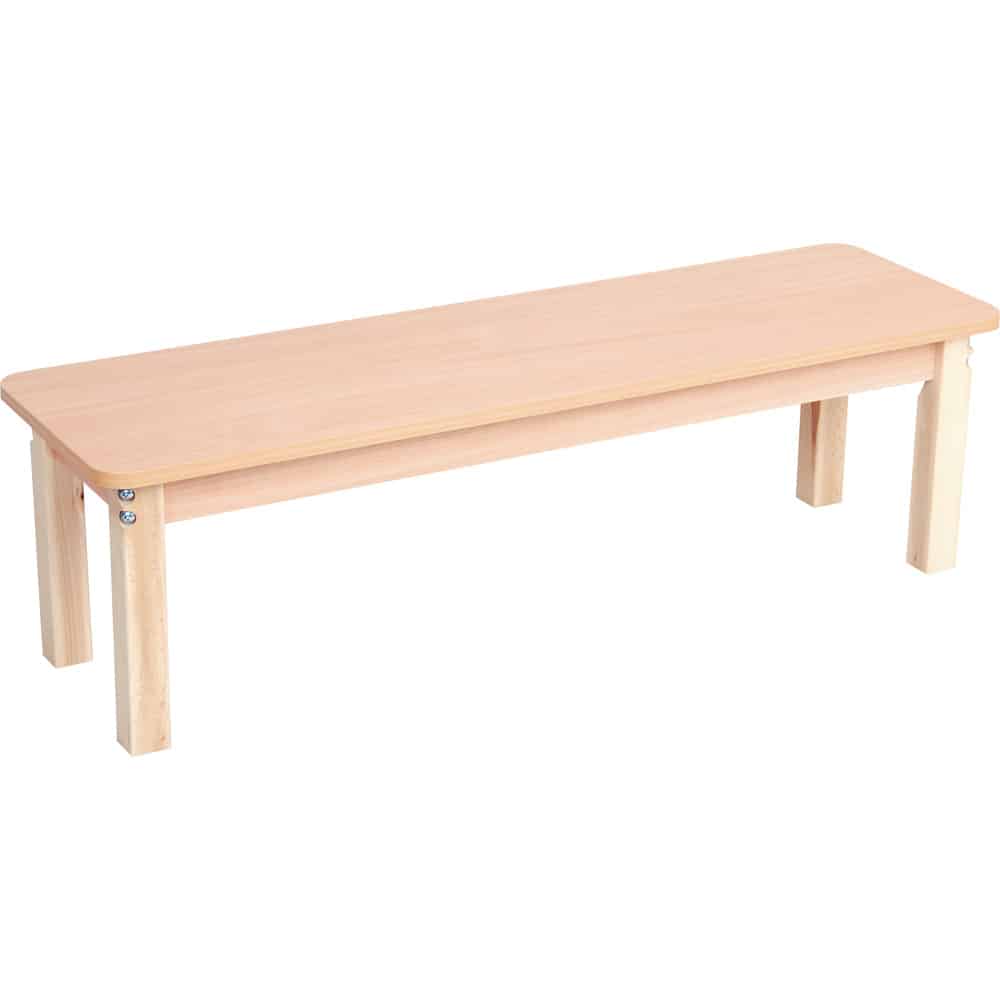 Die quadratischen Beine verleihen der Bank nicht nur eine moderne Optik, sondern sorgen auch für eine stabile und sichere Sitzgelegenheit. Die langlebigen Materialien und die sorgfältige Verarbeitung gewährleisten eine hohe Belastbarkeit und Langlebigkeit, selbst bei intensiver Nutzung im Kindergartenalltag.