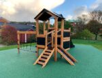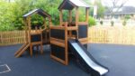 - Fallschutz integriert: Die Konstruktion ist für die Verwendung mit einer weichen Rasenfläche geeignet – ideal für Ergänzungen mit Sicherheitsmatten oder anderen Fallschutzelementen.