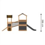 - Kompakte Größe: Trotz seiner Vielfalt an Funktionen und seinem Platzangebot benötigt das Spielhaus nur eine moderat große Grundfläche, was es perfekt für Gärten oder Spielplätze macht.
