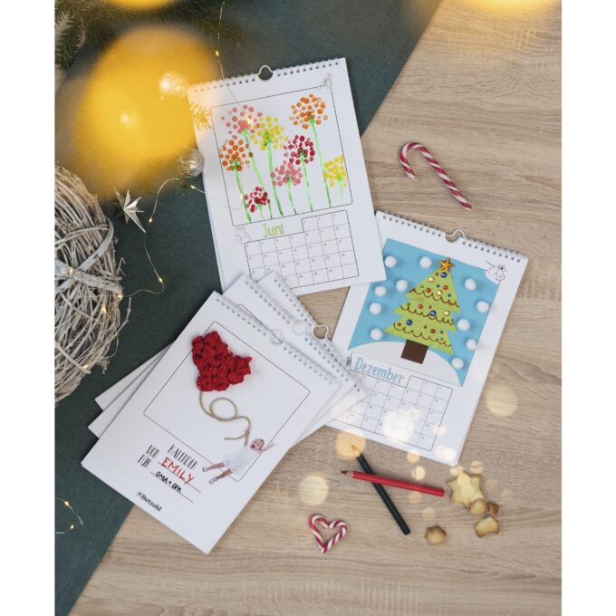 - Die 12 Blanko-Kalenderblätter und das Deckblatt bieten ausreichend Raum für individuelle Gestaltungen.