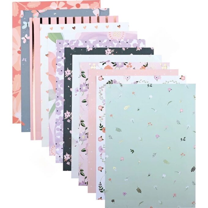 Dank der hohen Grammatur lässt sich das Papier hervorragend schneiden, falten und kleben, sodass Sie auch aufwendigere Bastelideen mühelos umsetzen können. Die floralen Designs sind ideal für saisonale Deko, Hochzeiten, Geburtstagsfeiern oder einfach für kreative Nachmittage mit den Kindern.