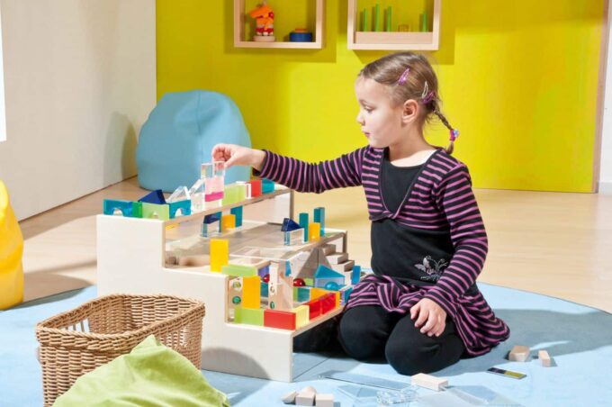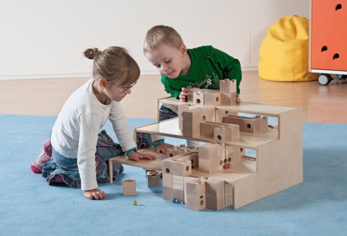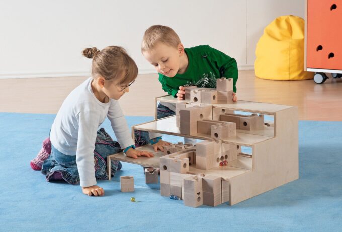 - Förderung von Motorik und Konzentration: Das Spielen auf unterschiedlichen Höhen und das Balancieren auf den Stufen fordert die Motorik und die Konzentration der Kinder. Gleichzeitig wird das Abstraktions- und Vorstellungsvermögen gefördert, während sie ihre eigenen Spielwelten erschaffen.