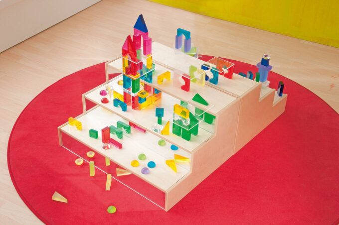 - Vielseitige Nutzung: Die Bau- und Spielstufen können freistehend auf einem Spielteppich, in der Bauecke oder an einer Wand gelehnt platziert werden. Sie eignen sich auch wunderbar, um Exponate der Kinder in Szene zu setzen, beispielsweise auf einem Regal oder Tisch.