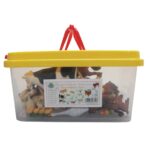 Die Tiere kommen in verschiedenen Größen von 4 bis 12,5 cm Länge und 2 bis 9 cm Höhe und sind ideal für kleine Hände. Geliefert in einer handlichen Kunststoffbox mit Deckel und Henkel für eine ordentliche Aufbewahrung und leichten Transport.