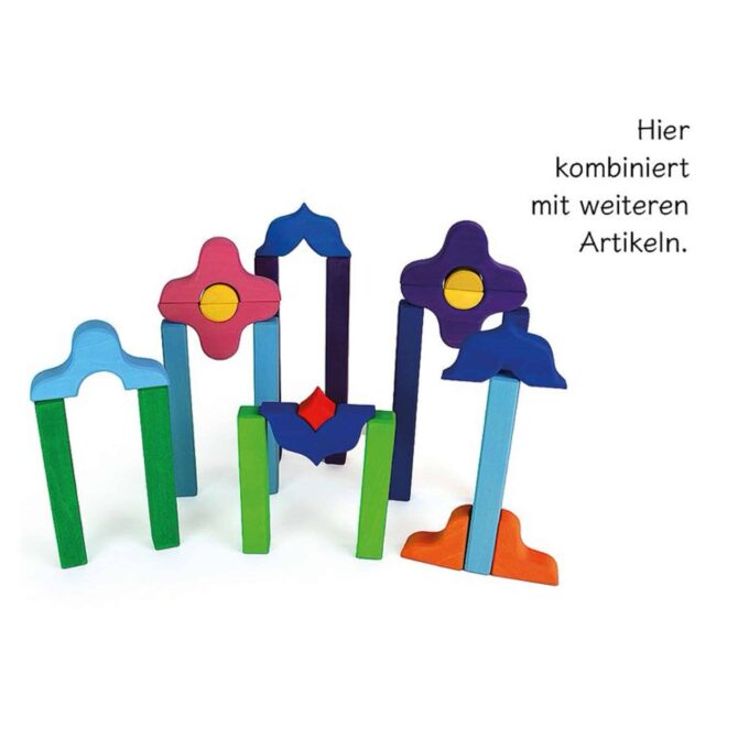 Dank der unterschiedlichen Formen und Größen der Ornamente können Kinder ganz neue Strukturen und Designs erschaffen. Die größte Figur misst L 12 cm x B 6 cm x H 2,5 cm, was sie perfekt zum Greifen und Manipulieren macht. Diese Vielseitigkeit ermöglicht es den Kindern, ihre Kreativität auszuleben und eigene Geschichten oder Szenarien zu gestalten. Egal ob beim Bauen von Türmen, beim Erstellen kreativer Formen oder beim Ausprobieren ihrer eigenen Muster – der Spielspaß ist garantiert!