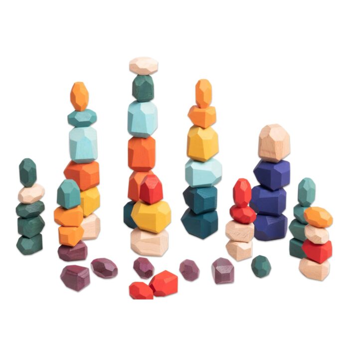Die Holz-Edelsteine sind nicht nur ideal für das Spielen zu Hause, sondern auch hervorragend geeignet für den Einsatz in der Waldorf- und Montessori-Pädagogik. Hier kommen Kindern die polygonalen Formen zugute, um erste physikalische Erkenntnisse zu sammeln und ihre Problemlösungsfähigkeiten zu schulen.