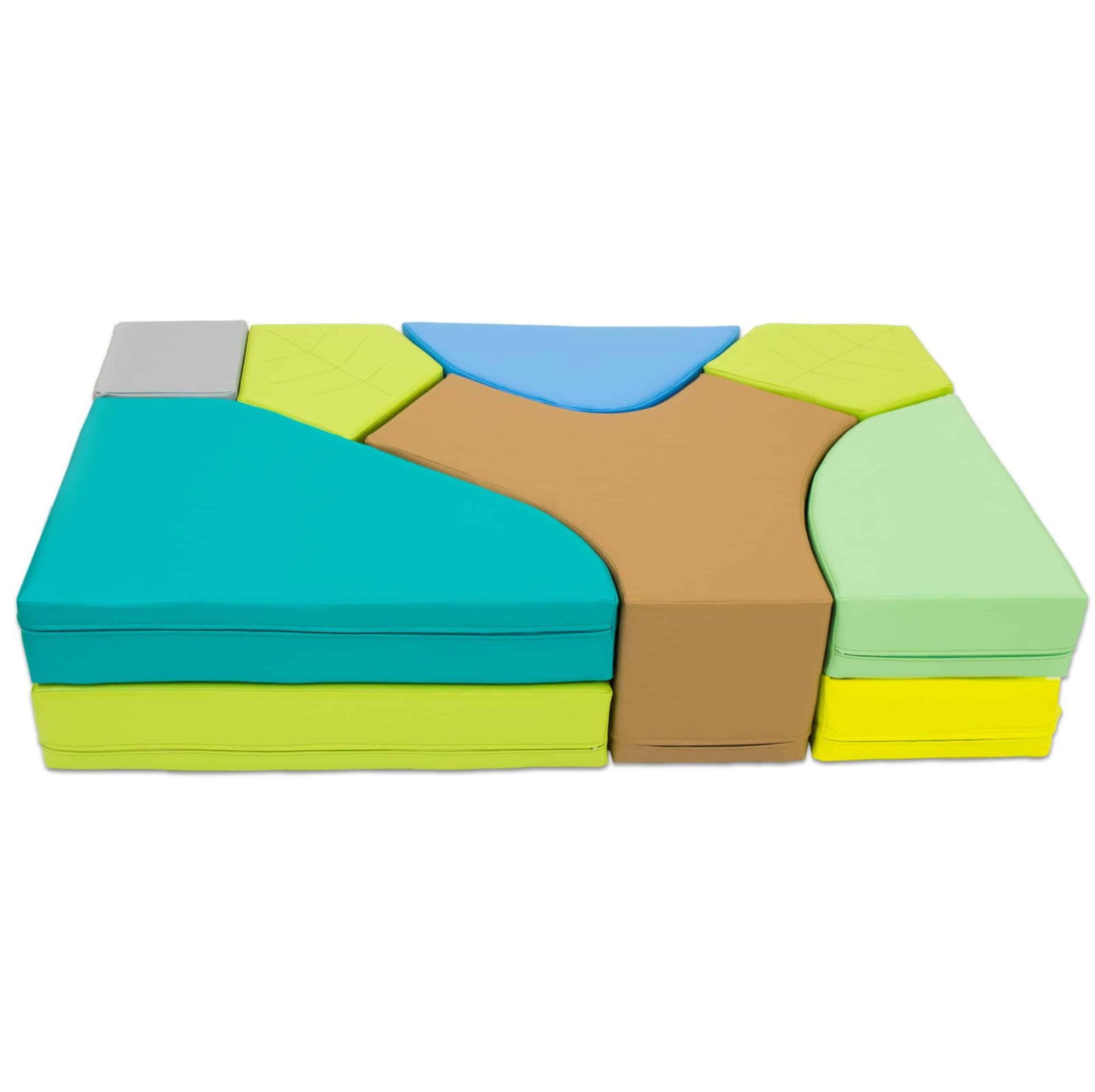 Die Baumpuzzle-Weichbausteine sind so konzipiert, dass sie einen sicheren und angenehmen Spielbereich bieten. Über die gesamte Höhe von 30 cm und die Breite von 150 cm schaffen sie viel Platz für verschiedene Spielrichungen. Die verschiedenen Elemente, wie der Baumstamm (70 x 83 x 30 cm) und der See (34 x 65 x 15 cm), sind ideal, um verschiedene Rollen und Szenen nachzustellen – seien es Abenteuer mit Tieren oder Geschichten aus Lieblingsbüchern.