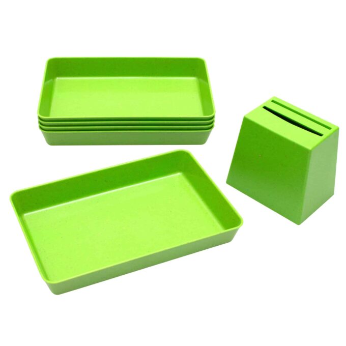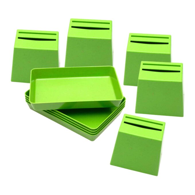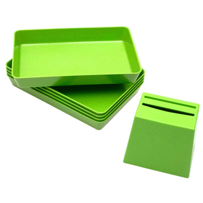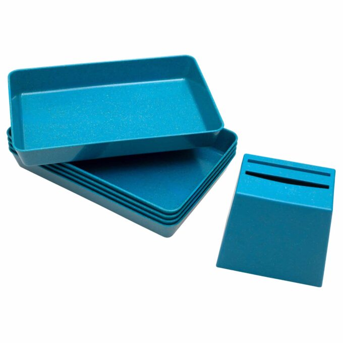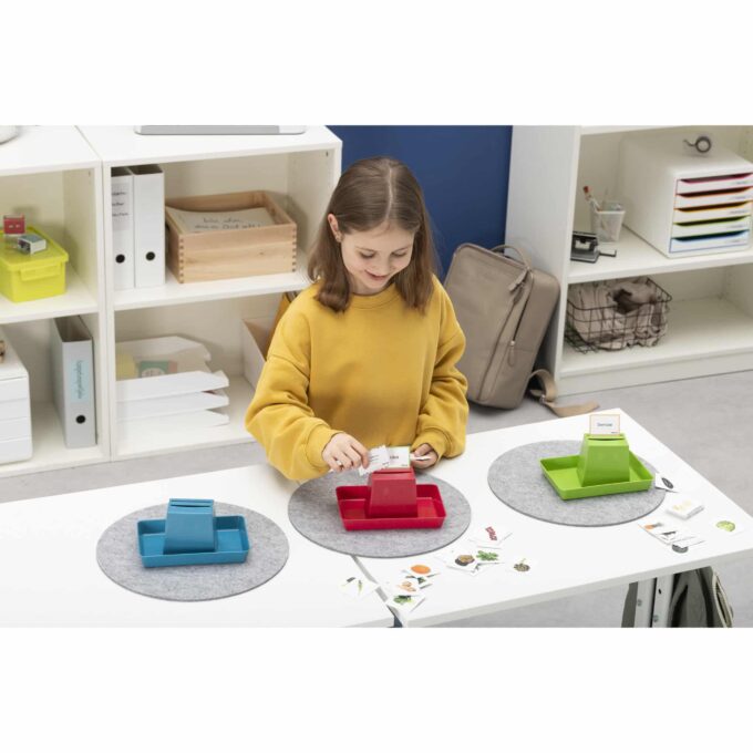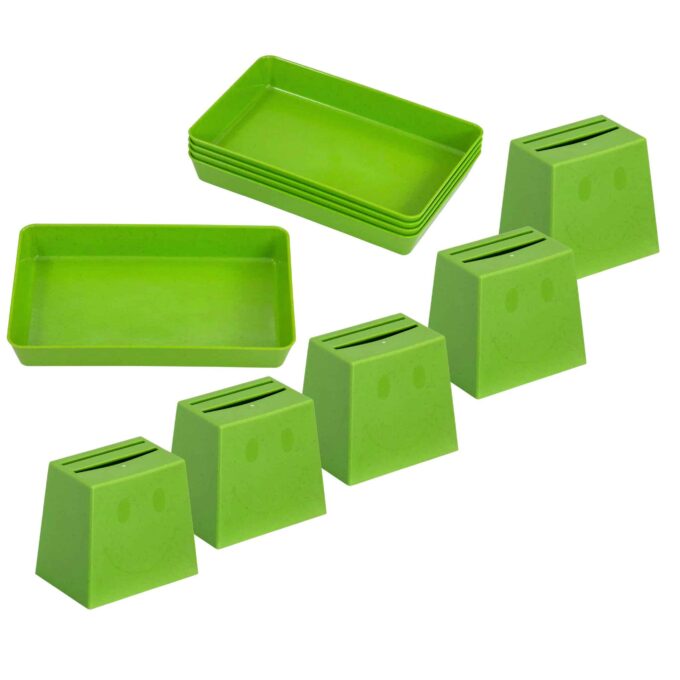 Hergestellt aus dem umweltfreundlichen Biokunststoff treeNside, der aus nachwachsenden Rohstoffen wie Pflanzenfasern besteht, überzeugt dieses Set durch Nachhaltigkeit und Qualität. Die Becherquizzer sind nicht nur ideal zum Sortieren von Karten (nicht im Lieferumfang enthalten), sondern helfen auch dabei, die Kinder zum ordentlich aufräumen und sammeln zu motivieren. Nach dem Einwerfen der Sortierkarten in den Becherquizzer werden die Karten ordentlich in der Schale gesammelt.