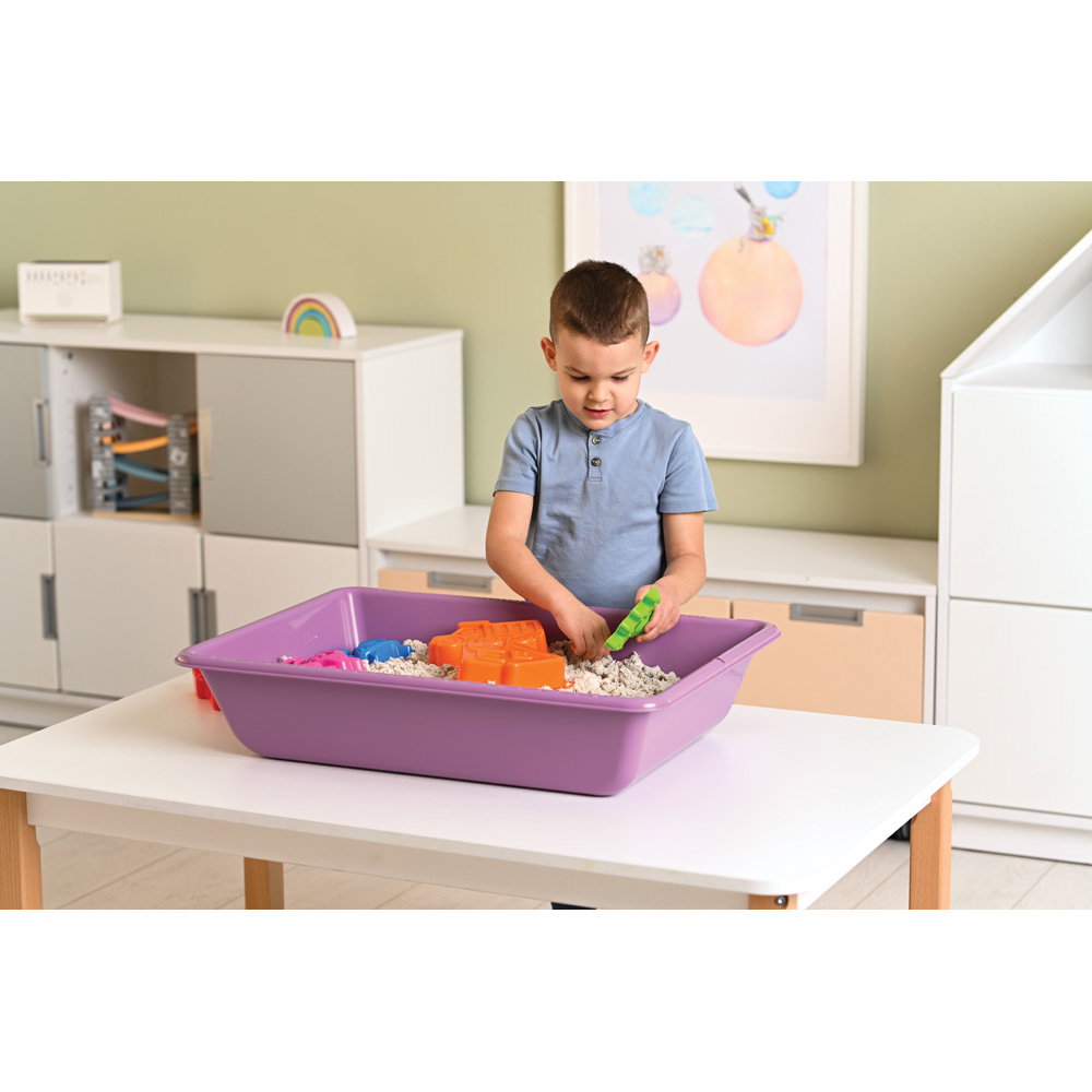Diese Wannen sind wahre Verwandlungskünstler. Nutzen Sie sie zur übersichtlichen Aufbewahrung von Bastelutensilien, Bauklötzen oder Spielzeug. Dank ihrer flachen Form und des robusten Materials eignen sie sich aber auch hervorragend als mobile Sand- oder Wasserwannen für drinnen und draußen. Sie bieten eine definierte Spielfläche und schützen den Untergrund. - Platzsparend und stapelbar