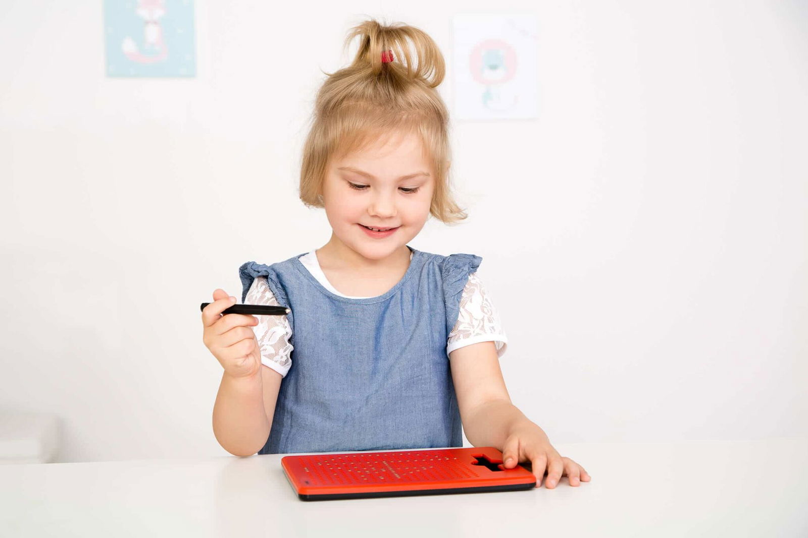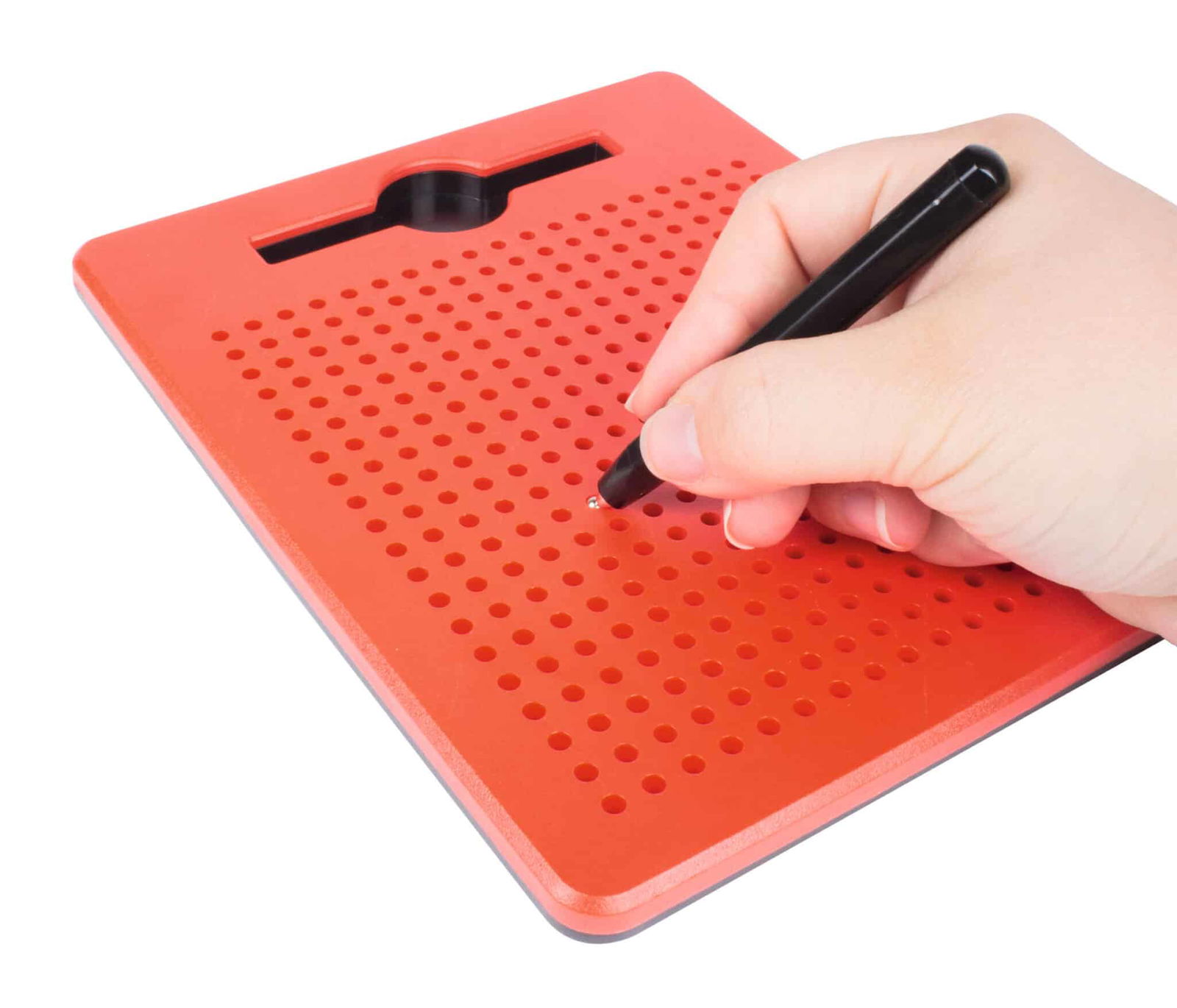 Mit dem magischen Magnetboard lassen sich wie durch Zauberhand tolle Bilder erschaffen. Beim Annähern mit dem magnetischen Stift erscheinen die Kugeln sichtbar an der Oberfläche. Sie bleiben dort, bis ein neues Kunstwerk entstehen soll und die Kugeln dafür wieder mit Finger oder Stift zurück ins Board gedrückt werden.