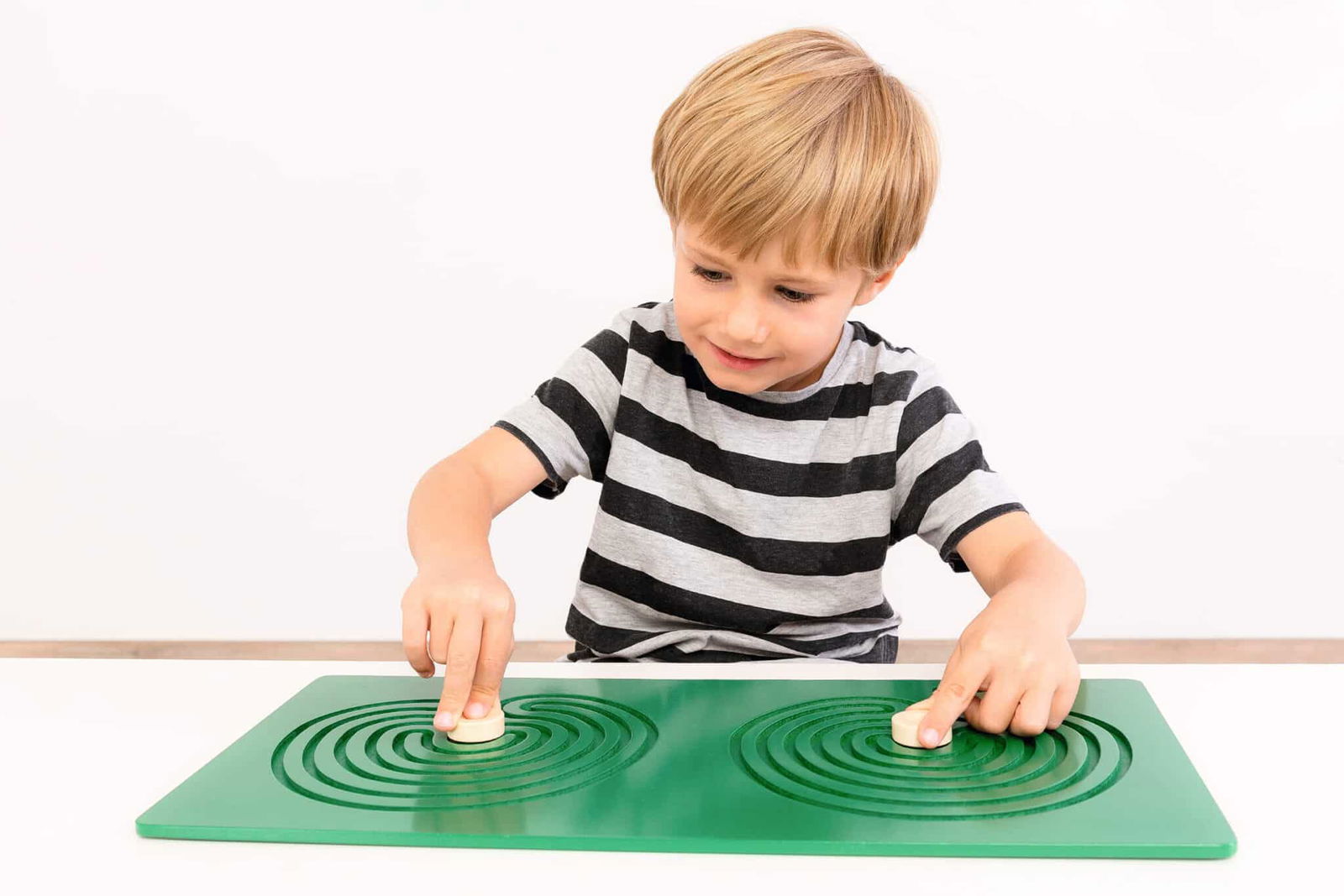 Förderung der grundlegenden Fähigkeiten zum Lesen- und Schreibenlernen durch Schulung der Auge-Hand-Koordination, der Feinmotorik sowie der Konzentration. Gut für Menschen mit körperlichen Einschränkungen