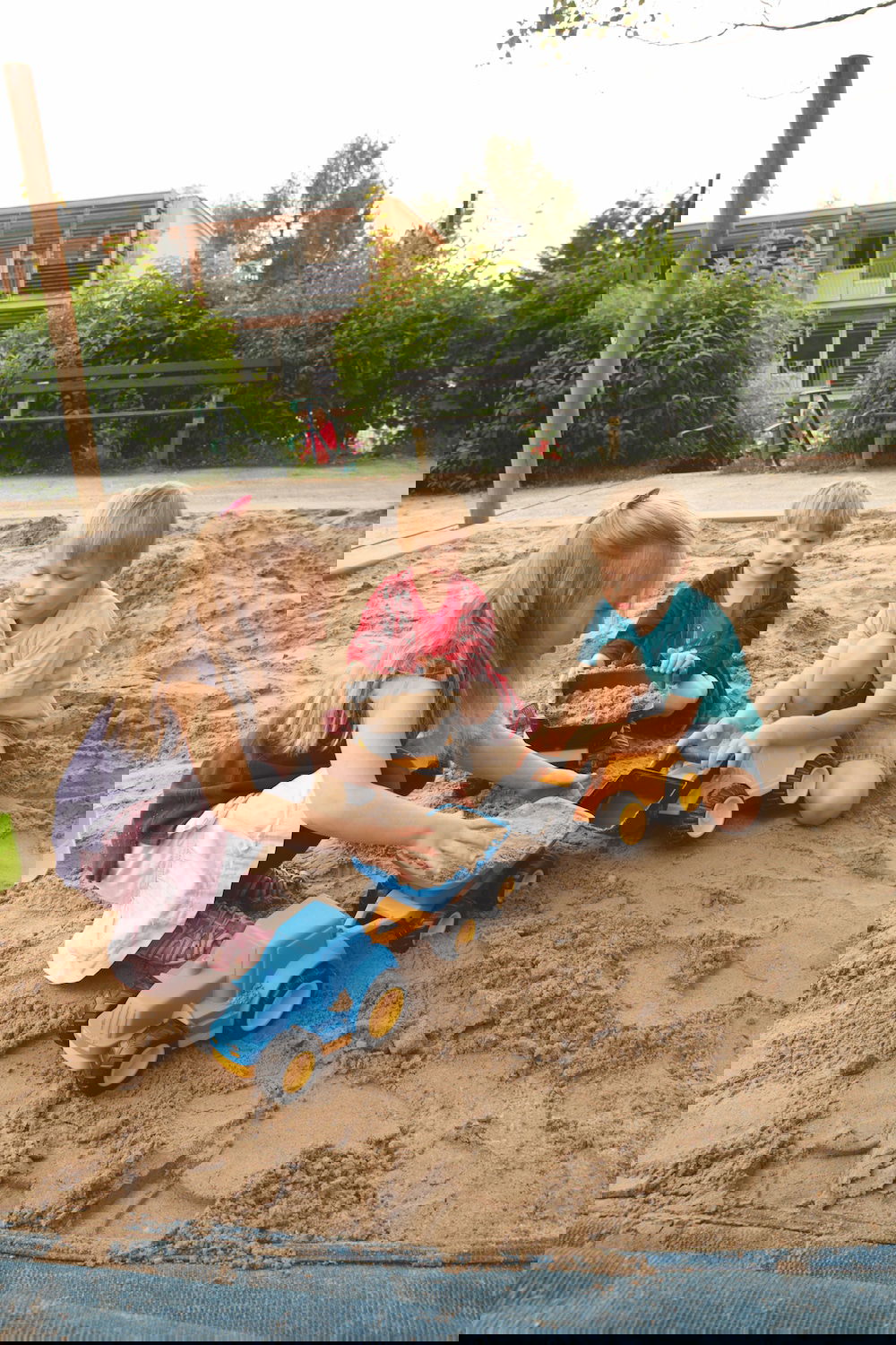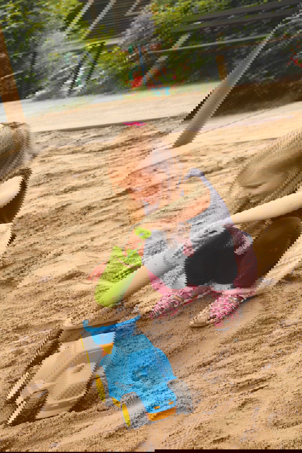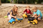 Der Traktor mit Anhänger ist ein toller Begleiter für den Sandkasten. Der Anhänger ist abnehmbar und verfügt über eine Kippfunktion, die das Be- und Entladen von Sand erleichtert. Sowohl Traktor als auch Anhänger bestehen aus stabilem UV-beständigen Kunststoff. Die Stahlachsen sorgen für extra Stabilität und die leisen EVA-Reifen hinterlassen tolle Spuren in Sand und Schnee.