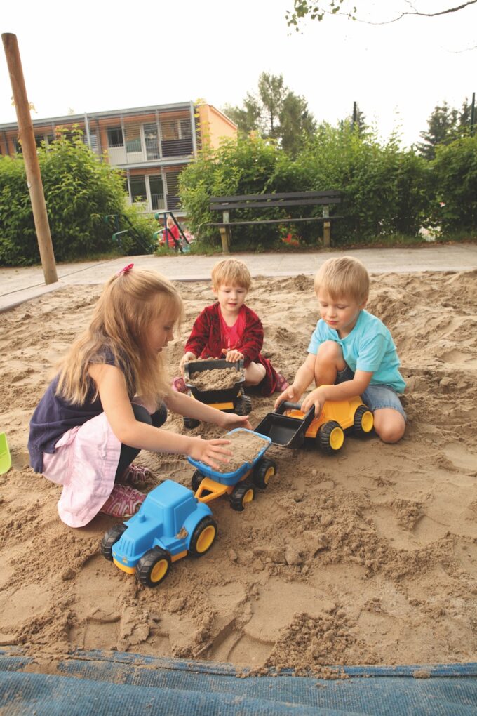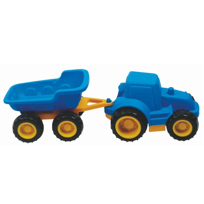 Der Traktor mit Anhänger ist ein toller Begleiter für den Sandkasten. Der Anhänger ist abnehmbar und verfügt über eine Kippfunktion, die das Be- und Entladen von Sand erleichtert. Sowohl Traktor als auch Anhänger bestehen aus stabilem UV-beständigen Kunststoff. Die Stahlachsen sorgen für extra Stabilität und die leisen EVA-Reifen hinterlassen tolle Spuren in Sand und Schnee.