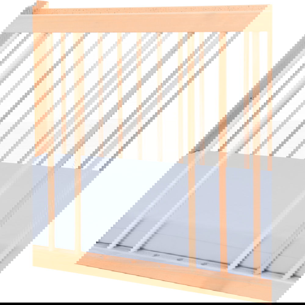 Wenn Ihr Kind das Lauflernalter erreicht hat, bietet das Bettchen Tommy eine weitere praktische Funktion: Drei der seitlichen Gitterstäbe sind als sogenannte Schlupfsprossen konzipiert. Diese lassen sich mit wenigen Handgriffen herausnehmen, sodass eine sichere Öffnung entsteht. Ihr Kind kann so selbstbestimmt und gefahrlos aus dem Bettchen krabbeln, ohne riskante Klettermanöver unternehmen zu müssen. Für Eltern, die Flexibilität schätzen, lässt sich das Bettchen zudem mit separat erhältlichen Rollen ausstatten. So können Sie den Schlafplatz mühelos von einem Raum in den anderen schieben. Bitte beachten Sie, dass die passende Matratze separat bestellt werden muss, um den Komfort perfekt zu machen.