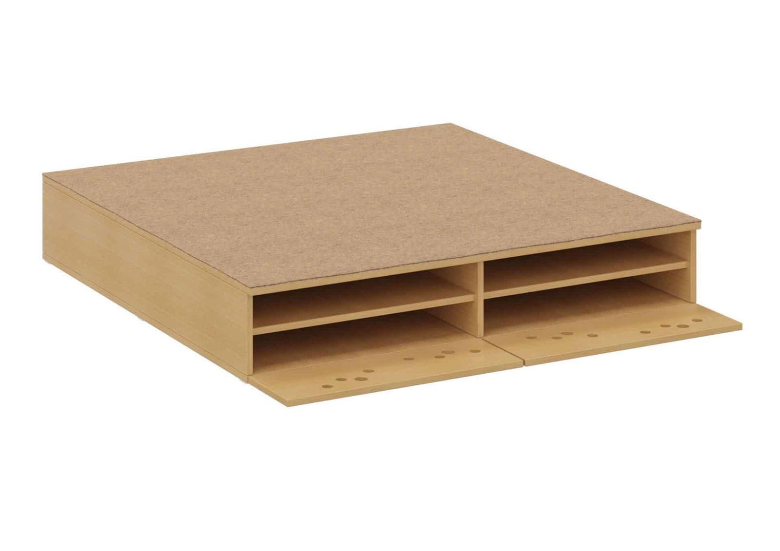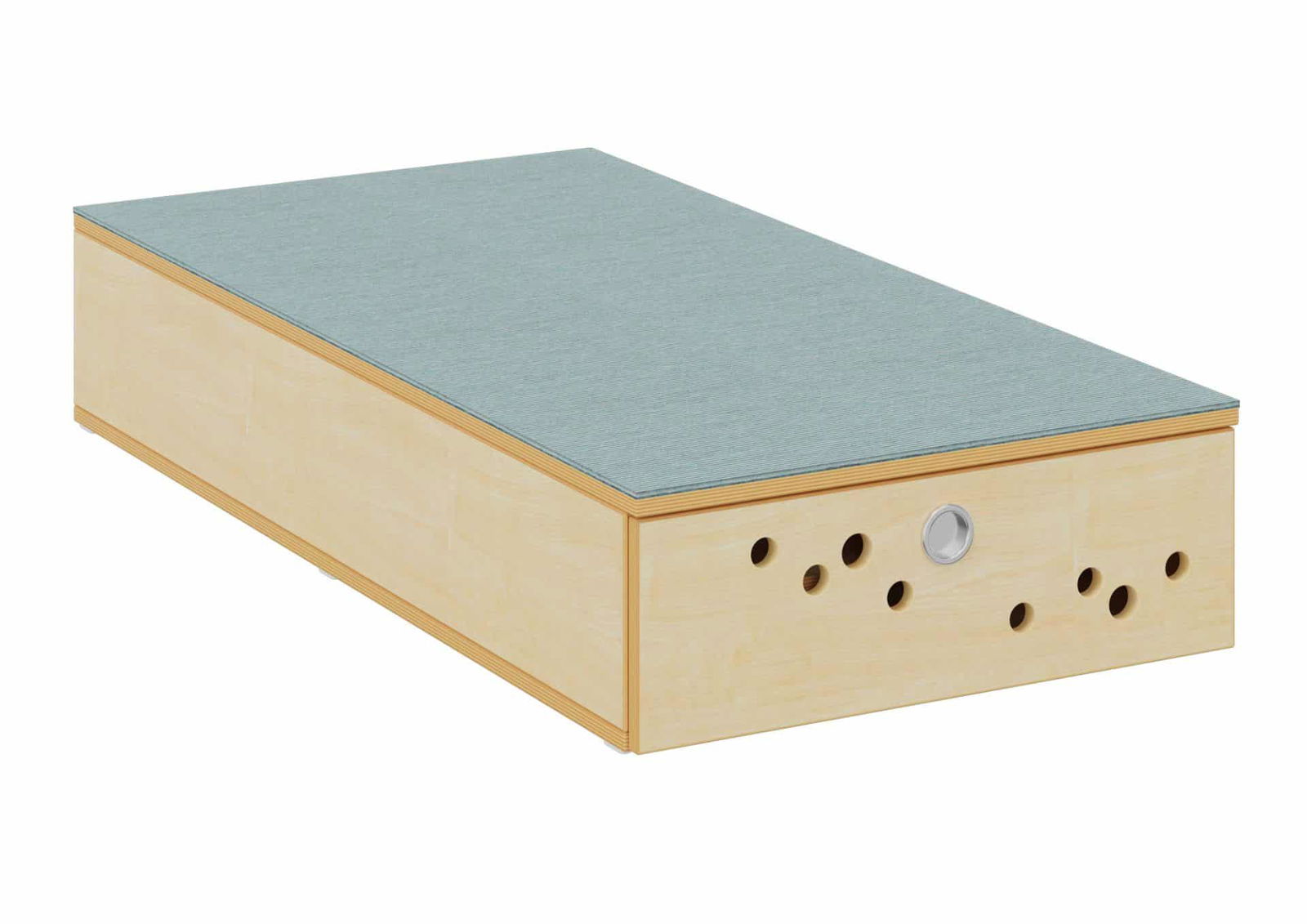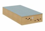 Durch die eingebauten Klappen mit Kreisfräsungen und eingelassenem Muschelgriff lassen sich die Matratzen leicht verstauen und wieder herausnehmen. Der eingelassene Klappenbeschlag, bündig mit dem Oberboden und seitlichem Magnetschnapper, sorgt für eine sichere Aufbewahrung. Die robuste Konstruktion und hochwertigen Materialien garantieren eine lange Lebensdauer.