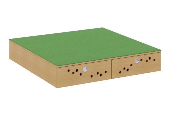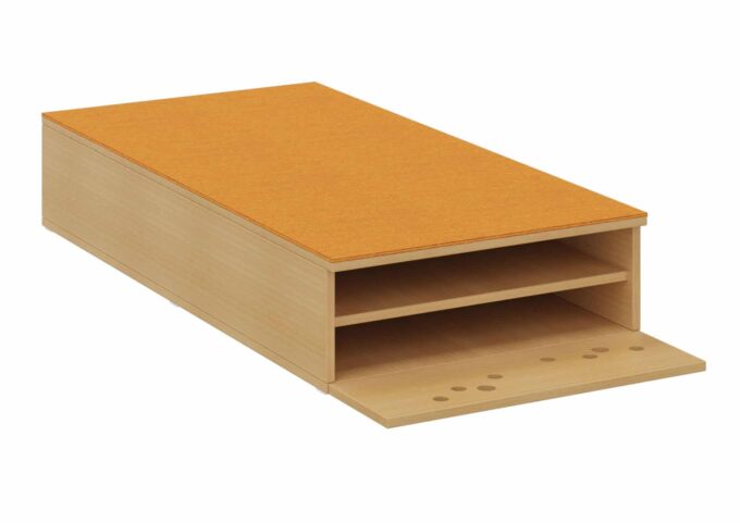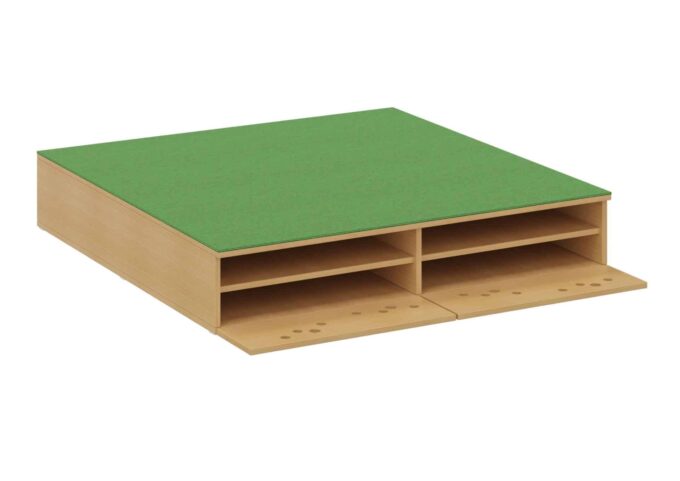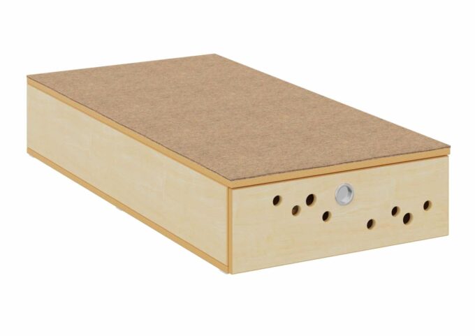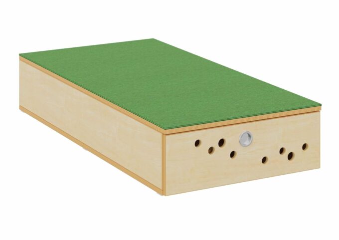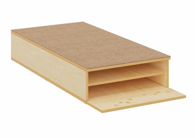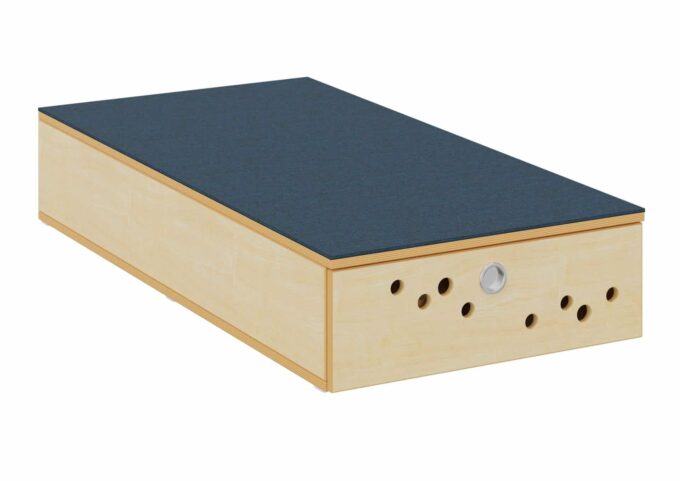 Das Bettenpodest mit Klappe von Dusyma ist die ideale Lösung für den Schlafplatz in Ihrer Kita oder Krippe. Es bietet praktischen Stauraum für Matratzen und Bettzeug und ist in zwei Breiten erhältlich: 70 cm für einen Schlafplatz oder 140 cm für bis zu zwei Schlafplätze. Mit einer Höhe von 25 cm ermöglicht das Podest das Verstauen von zwei Matratzen übereinander (bis zu vier bei der Breite von 140 cm).