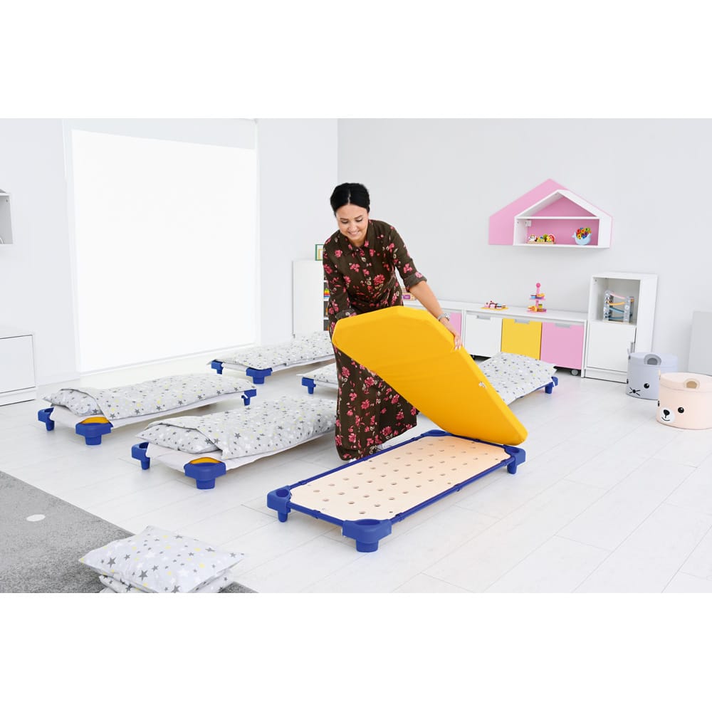 - 1 Bettlaken: Maße 146 x 65 cm, mit Haltegummis für sicheren Halt