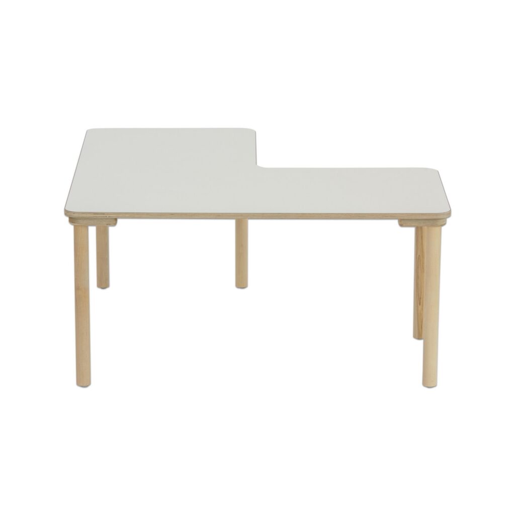 Der Betzold Baccus Winkeltisch ist speziell für die Bedürfnisse von Kindern im Alter von 6 bis 11 Jahren entwickelt. Seine stark abgerundeten Ecken (50 mm) bieten optimalen Schutz vor Verletzungen und machen das Spielen und Lernen am Tisch zu einer sicheren Angelegenheit. Die robuste Tischplatte, mit einer Stärke von 19,6 mm, sorgt für außergewöhnliche Stabilität und ist kratzfest, sodass der Tisch auch intensiv genutzt werden kann.