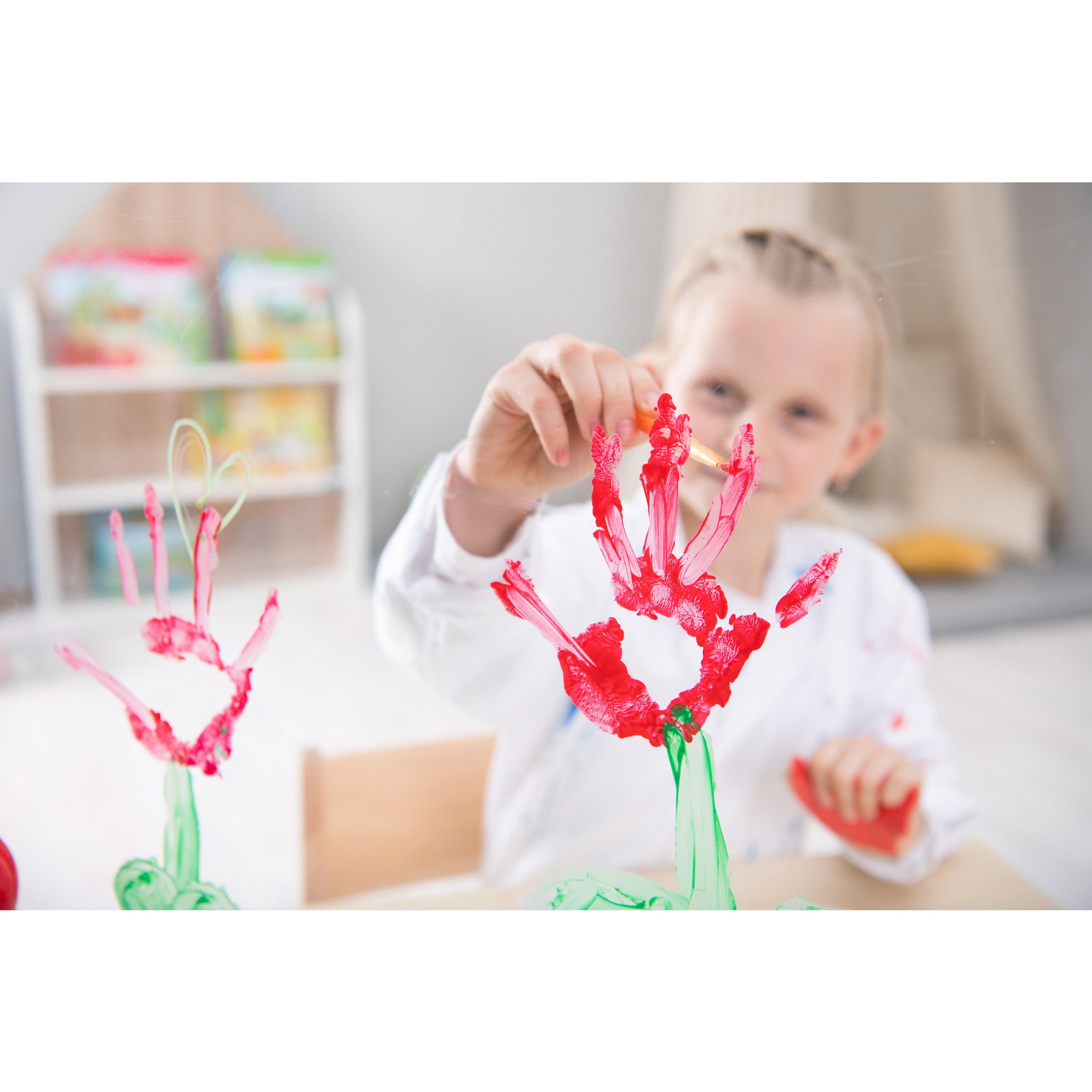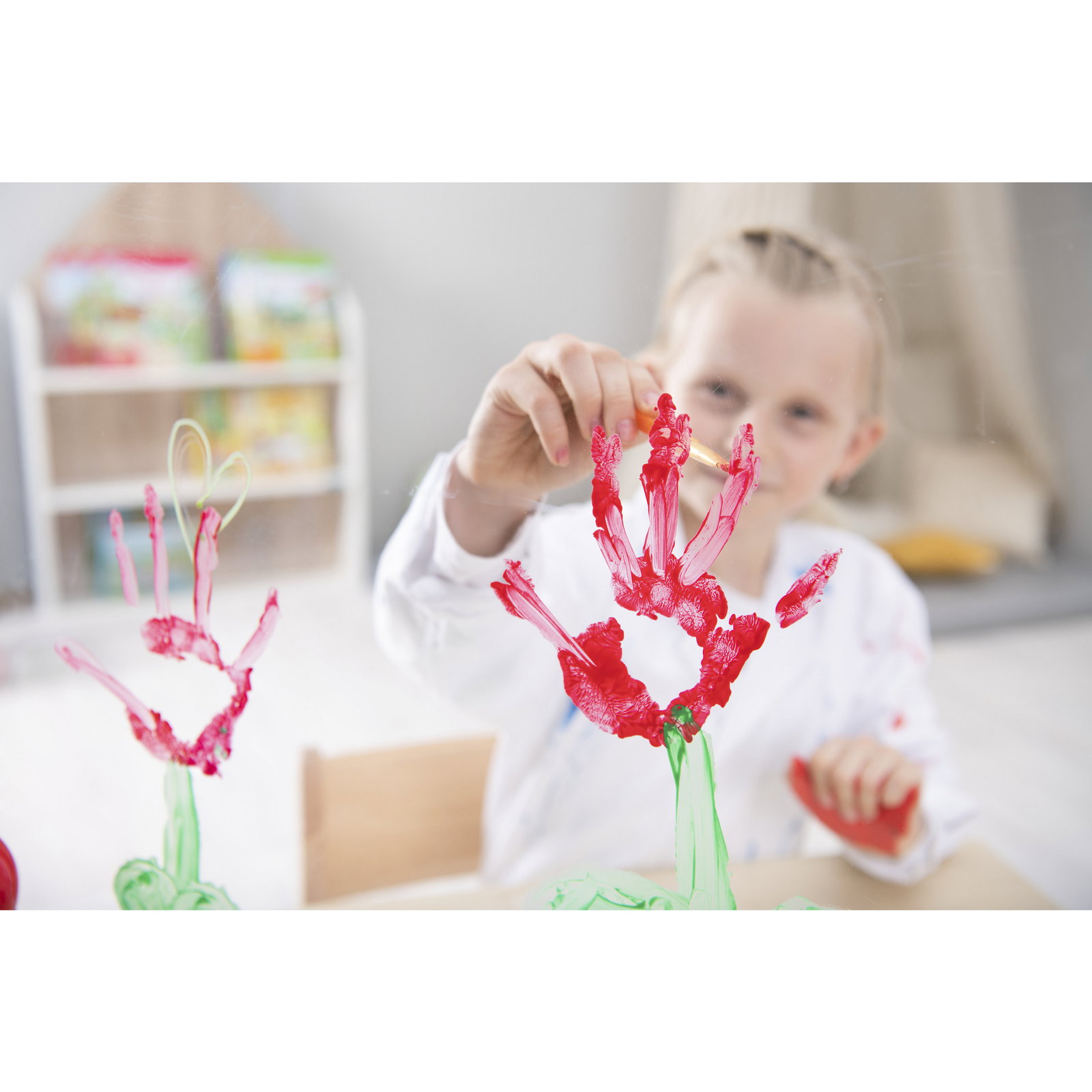 - Fördert die Kreativität und Sensorik: Das Malen mit den Händen unterstützt die sensorische Entwicklung und gibt Kindern die Freiheit, sich völlig frei auszudrücken.