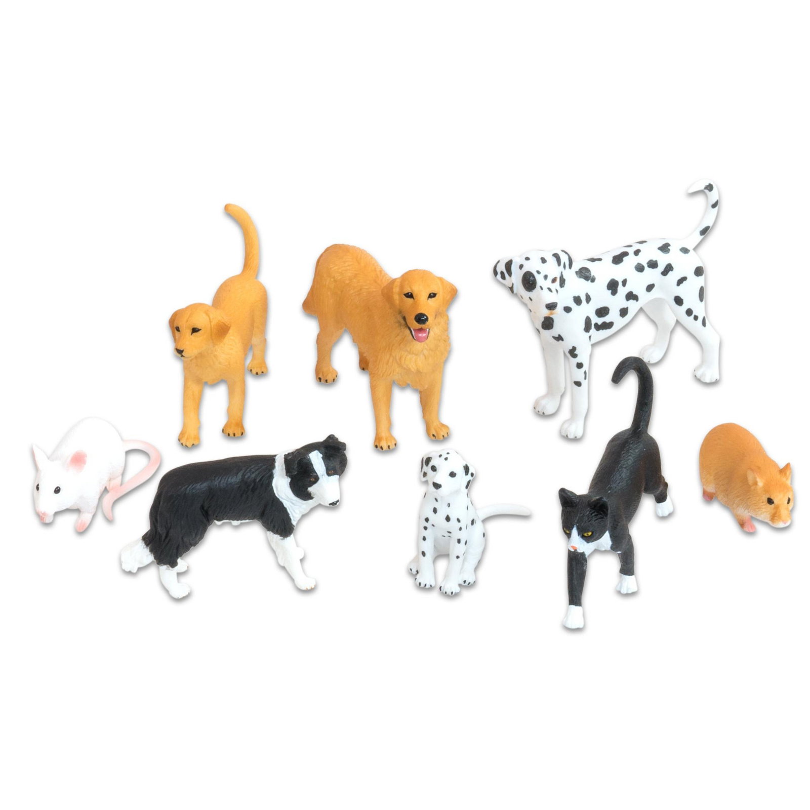 - Anzahl Teile: 8 Figuren (Golden Retriever, Golden Retriever Welpe, Dalmatiner, Dalmatiner Welpe, Border Collie, Katze, Maus, Hamster)