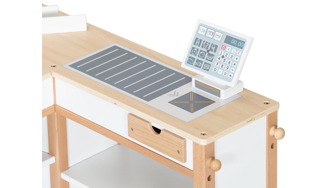 - Kombinationsmöglichkeiten: Unser Tipp: Kombinieren Sie den Kaufladen mit der Betzold-Kinderküche, um eine großartige Spielumgebung zu schaffen! Zusammen bringen diese beiden Produkte noch mehr Freude und Abwechslung ins Spiel.