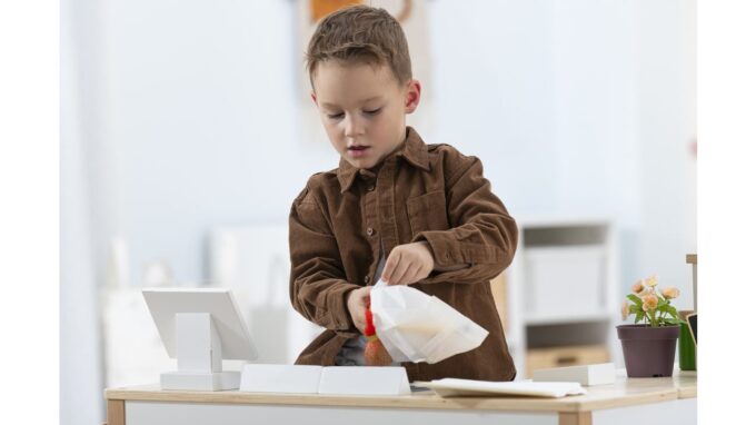 - Förderung von sozialen Kompetenzen: Durch das Spiel im Kaufladen entwickeln die Kinder wichtige Fähigkeiten wie Teamarbeit, Kommunikation und Empathie. Sie lernen, miteinander zu interagieren, während sie die Rollen von Kunden und Verkäufern übernehmen.