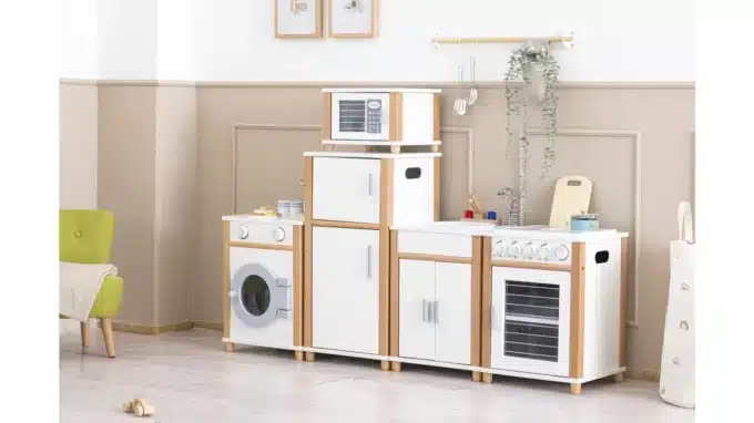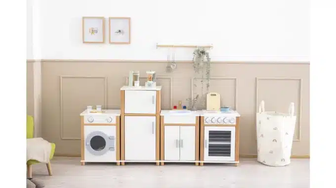 - Individuelle Aufstellmöglichkeiten: Die Küche ist so konzipiert, dass sie sich individuell an Ihren verfügbaren Platz anpassen lässt. Ob in der Spielecke, im Wohnzimmer oder im Kinderzimmer – die Streuung der Kammer ist anpassbar, so dass die Küche immer einen Platz findet.