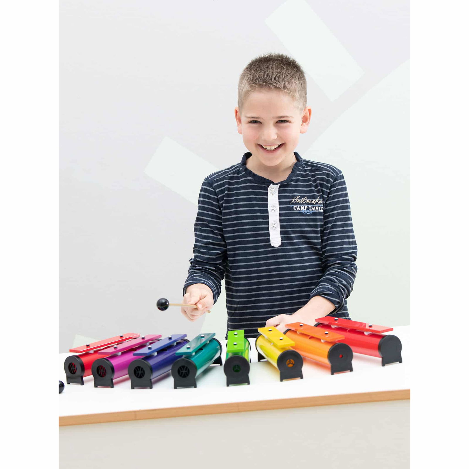 Mit insgesamt 8 oder 13 Round-Sound Tubes, je nach gewählter Ausführung, können die Kinder eine breite Palette an Tönen erzeugen. Sie lernen spielerisch Töne, Intervalle und Rhythmus, während sie ihre musikalischen Fähigkeiten entfalten.
