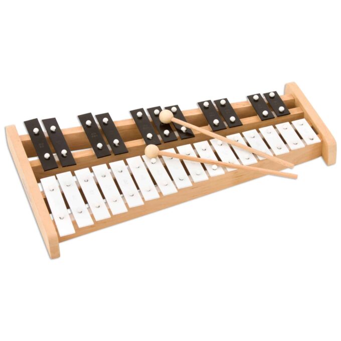 Das Glockenspiel ist speziell gestaltet, um Kindern im Alter von 5 bis 18 Jahren den Zugang zur Musik zu erleichtern. Ausgestattet mit einem stabilen Holzrahmen und 27 metallischen Klangplatten (Töne: g² bis a4, inklusive zwei zusätzlichen Tönen fis3 und b3), ist es ideal, um bekannte Kinderlieder zu begleiten oder eigene Melodien zu kreieren.