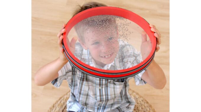 Die Meeres- oder Wellentrommel ist nicht nur ein gewöhnliches Musikinstrument, sondern auch das ideale Hilfsmittel, um Geschichten lebendig werden zu lassen. Ob im Musikunterricht, beim Geschichtenerzählen oder bei Rollenspielen – die Wellentrommel verleiht jeder Darbietung eine besondere Note. Wenn die Kinder die Trommel leicht schwenken, bewegen sich die Kügelchen im Inneren und erzeugen das harmonische Rauschen von Wellen. Wenn sie stärker und schneller bewegt wird, erinnert der Klang an das Tosen eines Sturms.