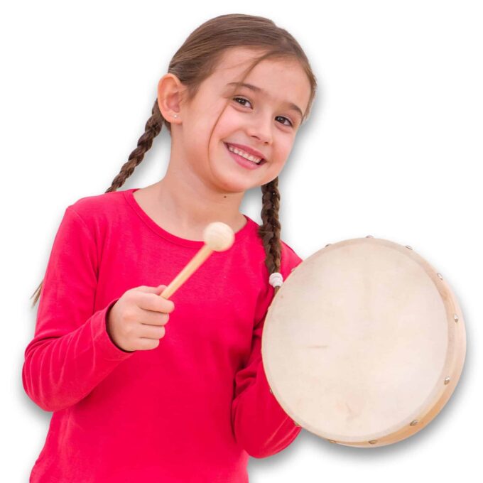 Die Spielmöglichkeiten sind vielfältig: Die Kinder können mit den Fingern, der Faust oder dem beiliegenden Schlägel auf das Fell trommeln. Das fördert das Takt- und Rhythmusgefühl auf spielerische Weise, während es gleichzeitig die motorischen Fähigkeiten schult. Ob im Kindergarten, in der Grundschule oder zu Hause – das Tamburin sorgt garantiert für Spaß und Begeisterung bei den Kleinsten!