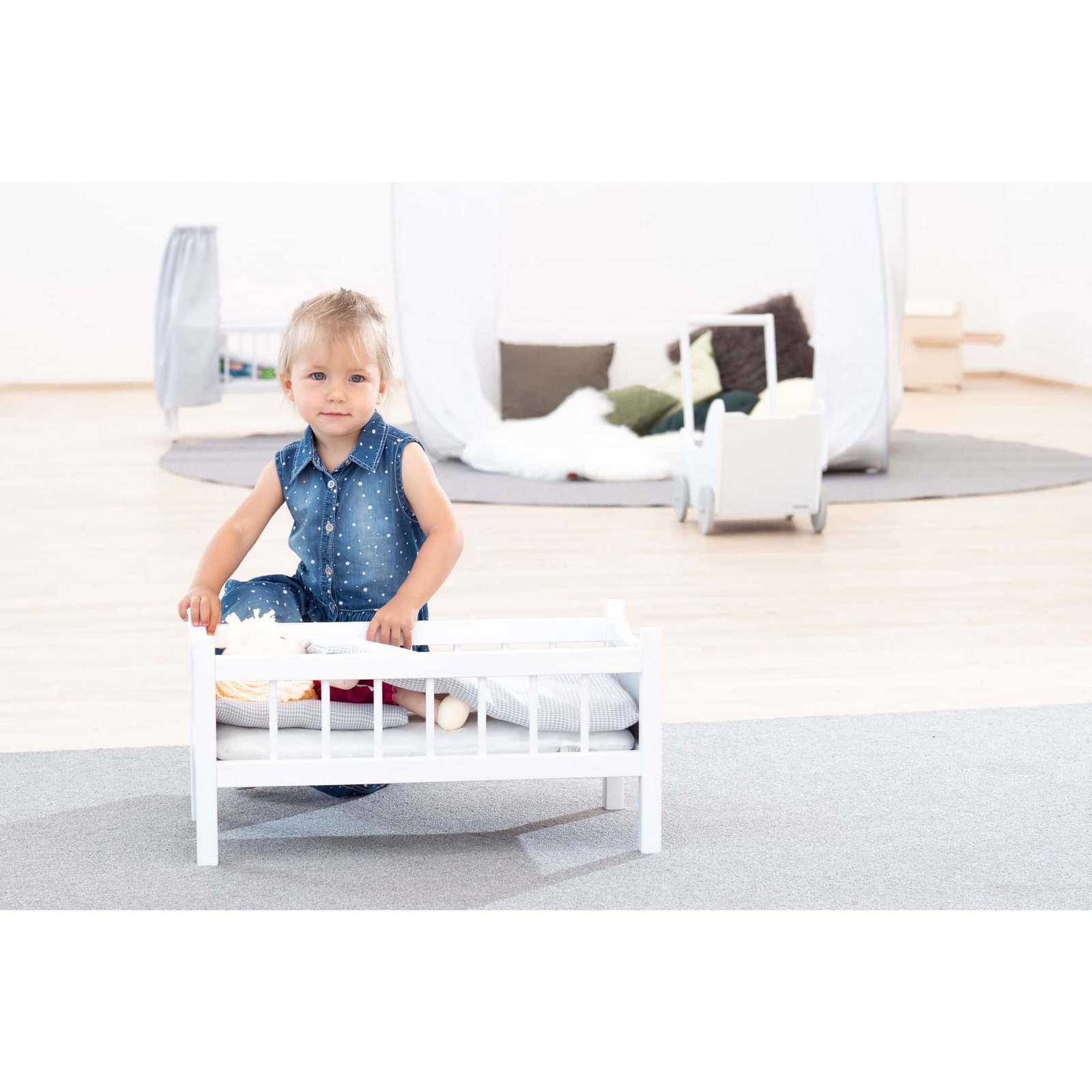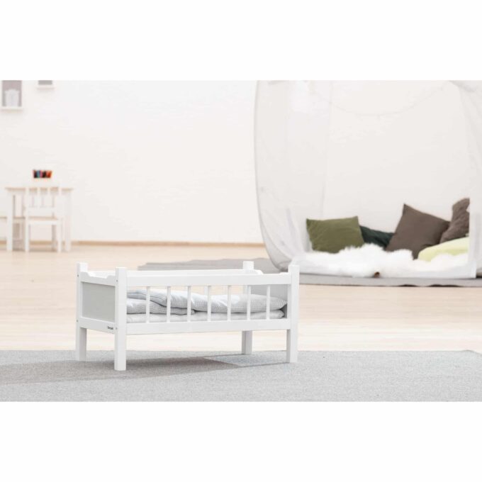 Willkommen beim Betzold Puppenbett! Dieses charmante Puppenbett aus robustem Buchenholz ist die perfekte Schlafstätte für kleine Puppeneltern, die ihren Schützlingen einen komfortablen Ort zum Ausruhen bieten möchten. Mit seinem ansprechenden Design in weiß und grau fügt es sich harmonisch in jedes Kinderzimmer ein und sorgt für einen Hingucker.