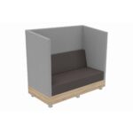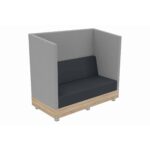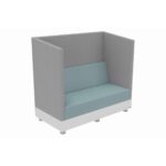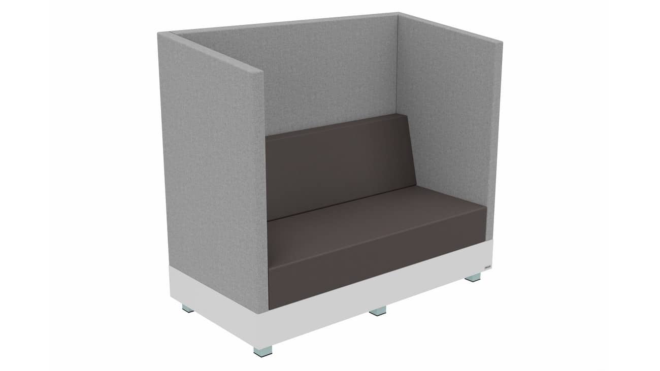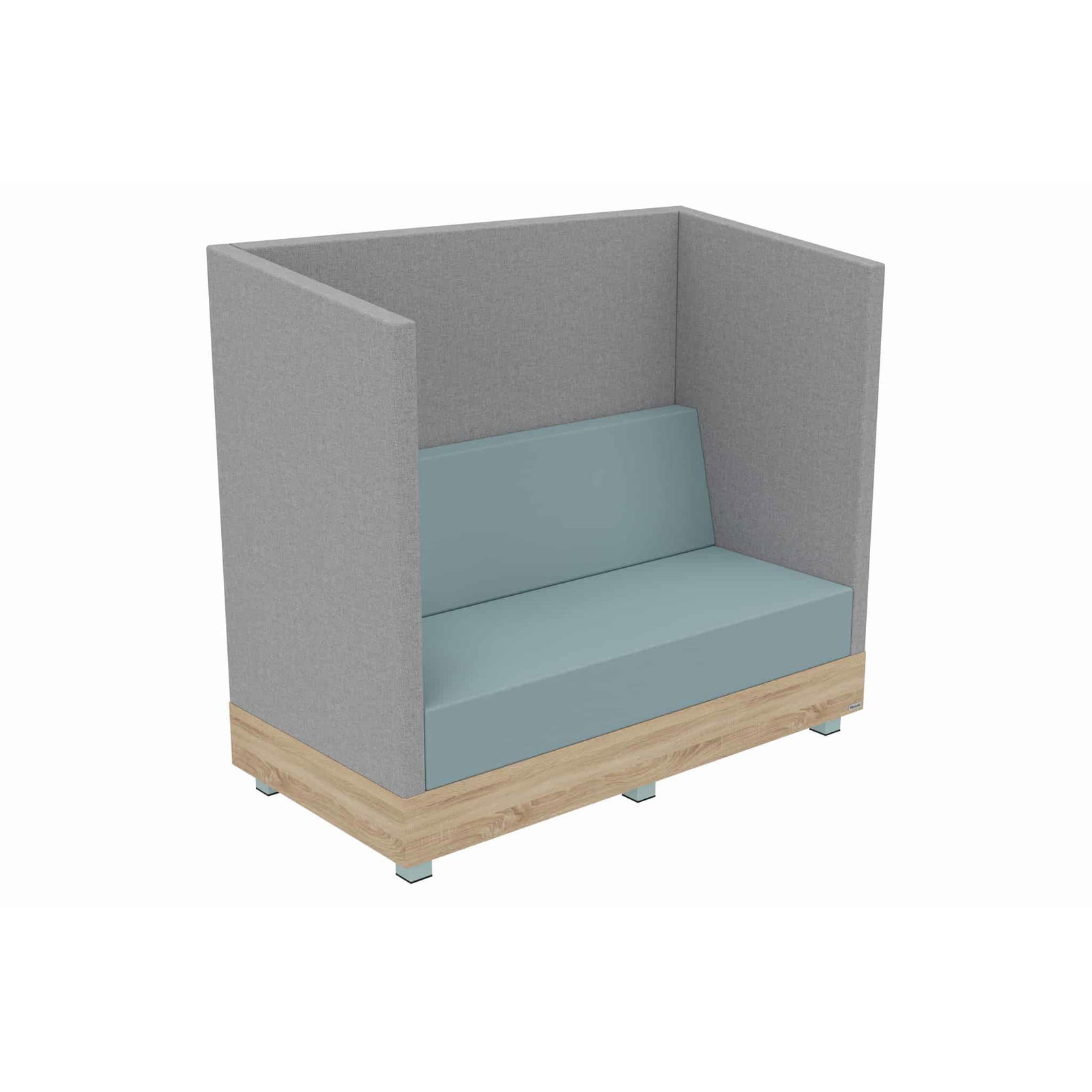 Die farblich neutralen Schallschutzwände und Seitenteile harmonieren mit jeder Umgebung, während die langlebigen Materialien Sicherheit, Komfort und eine einfache Pflege gewährleisten. Das Sofa ist nicht nur funktional, sondern auch robust und langlebig, was es ideal für den täglichen Einsatz in geschäftigen Bereichen macht.