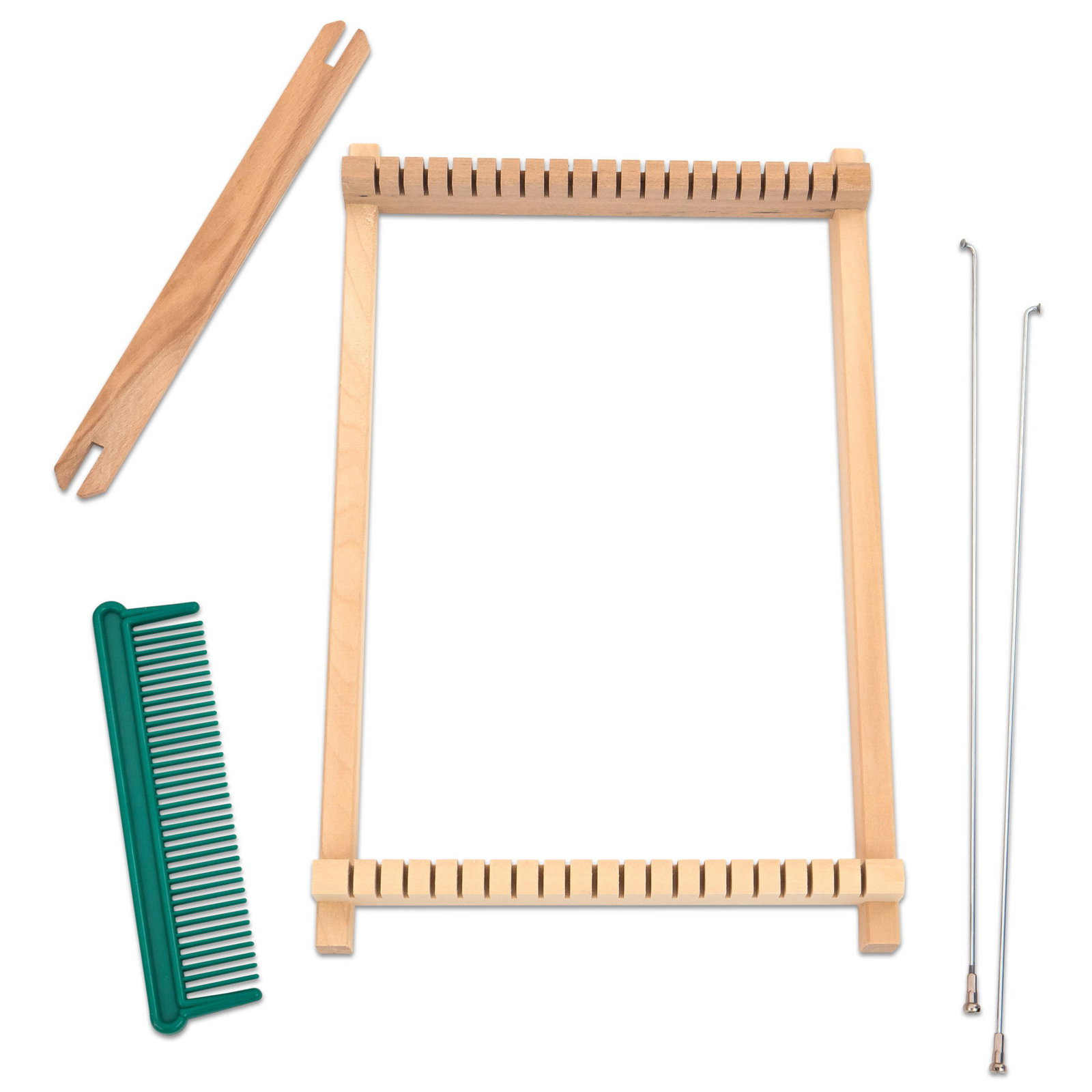 - Perfekte Spannung: Jeder Rahmen verfügt über eine fest verleimte Zahnleiste mit 21 Schlitzen, die für einen gleichmäßigen Abstand der Kettfäden sorgt.
