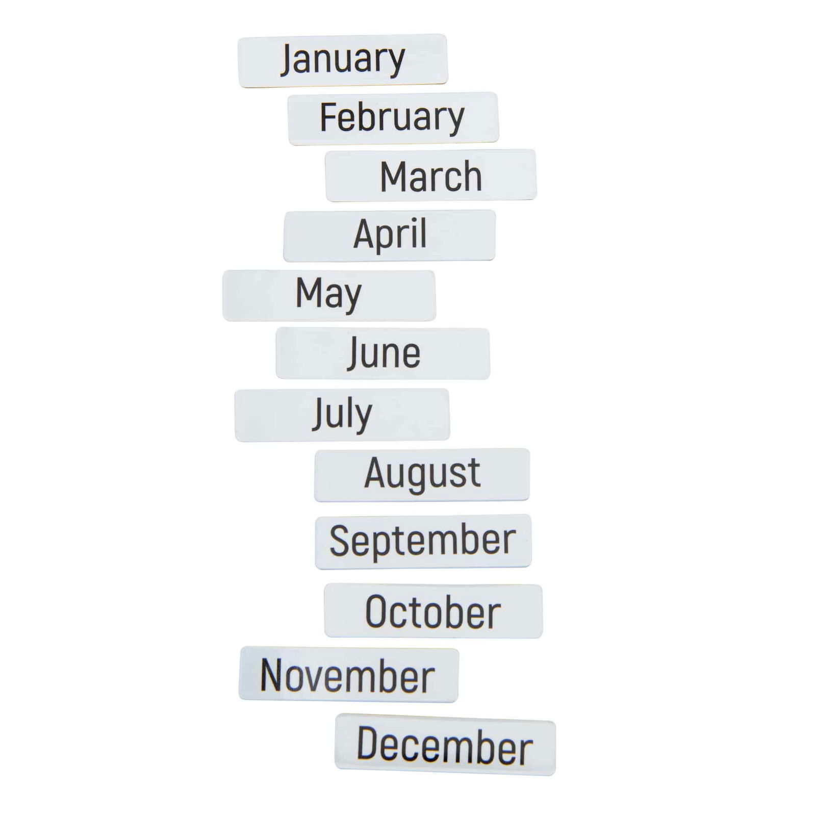 - Einfach zu bedienen: Das magnetische System erlaubt es, die Monatsnamen, Zahlen und Symbole schnell und einfach zu verschieben. Dabei hilft die klare Beschriftung in Schwarz auf Weiß, die auch aus der Entfernung gut lesbar ist.