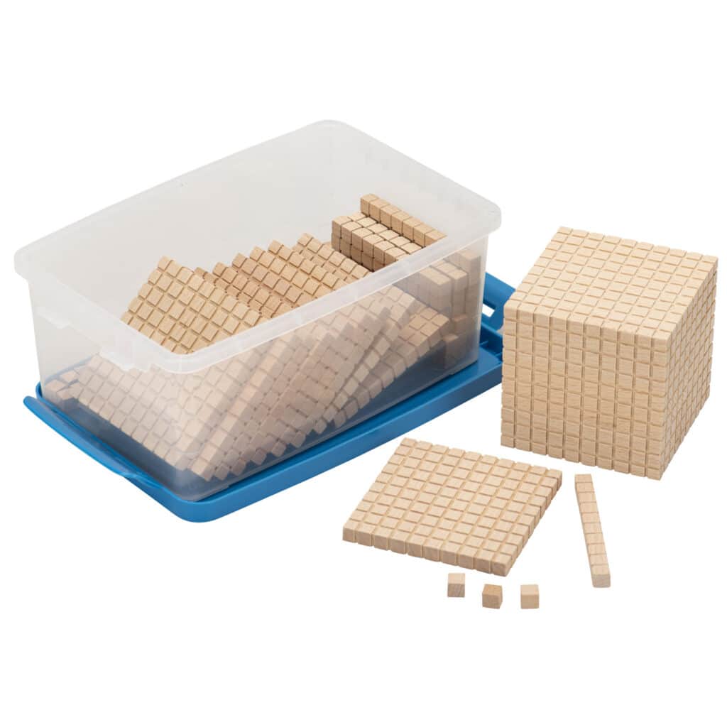 Der Zehnersystemsatz aus massivem Buchenholz ist für den regelmäßigen Einsatz in der Schule konzipiert. Die Schüler/innen können die einzelnen Teile – bestehend aus 100 Einerwürfeln, 20 Zehnerstangen, 10 Hunderterplatten und 1 Tausenderblock – nutzen, um das Zahlenverständnis spielerisch zu fördern. Durch das Hantieren mit diesen Materialien erhalten die Kinder ein greifbares Gefühl für Zahlen und deren Werte, und sie lernen spielend die Struktur des Zehnersystems kennen.