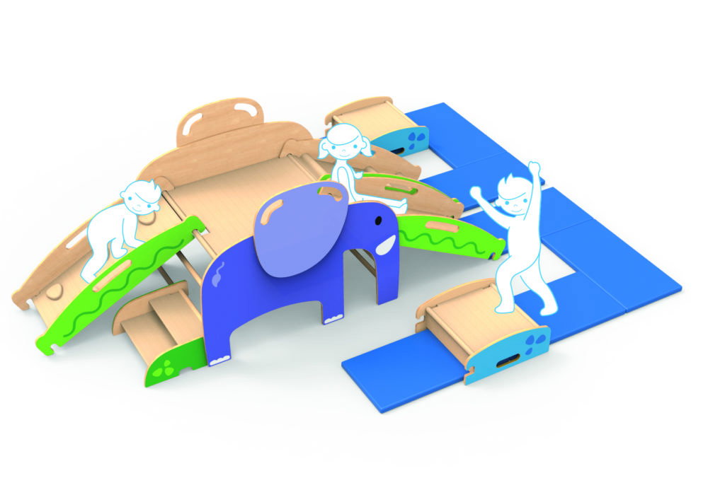 Machen Sie den Ausflug in die Wildnis jederzeit möglich mit dem Bewegungslandschaft Wild Climber – Elefant, Ihrem neuen All-in-One-Spielkameraden für Kindergarten und Krippe. Dieser freundliche Elefant lädt die Kinder ein, auf seinem Rücken zu rutschen, zu klettern und zu schaukeln. Er ist ein wahres Multitalent, das immer wieder neu zusammengesetzt werden kann, um unbegrenzten Spielspaß zu garantieren.