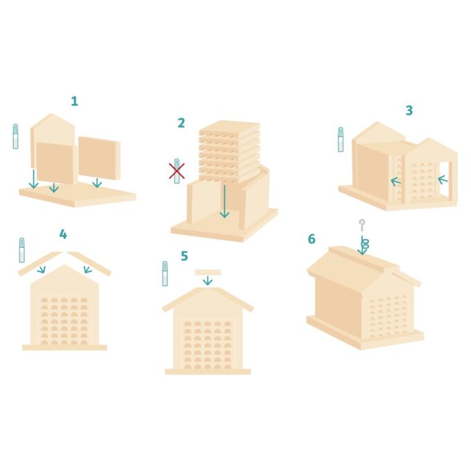 Das Solitärbienenhotel wird als Bausatz geliefert und bietet somit eine tolle aktive Beschäftigung für Kinder und Erwachsene. Beim Bau des Hotels können sie spielerisch die Bedeutung von Biodiversität entdecken und ein besseres Verständnis für ihre Umwelt und die Welt der Insekten entwickeln.
