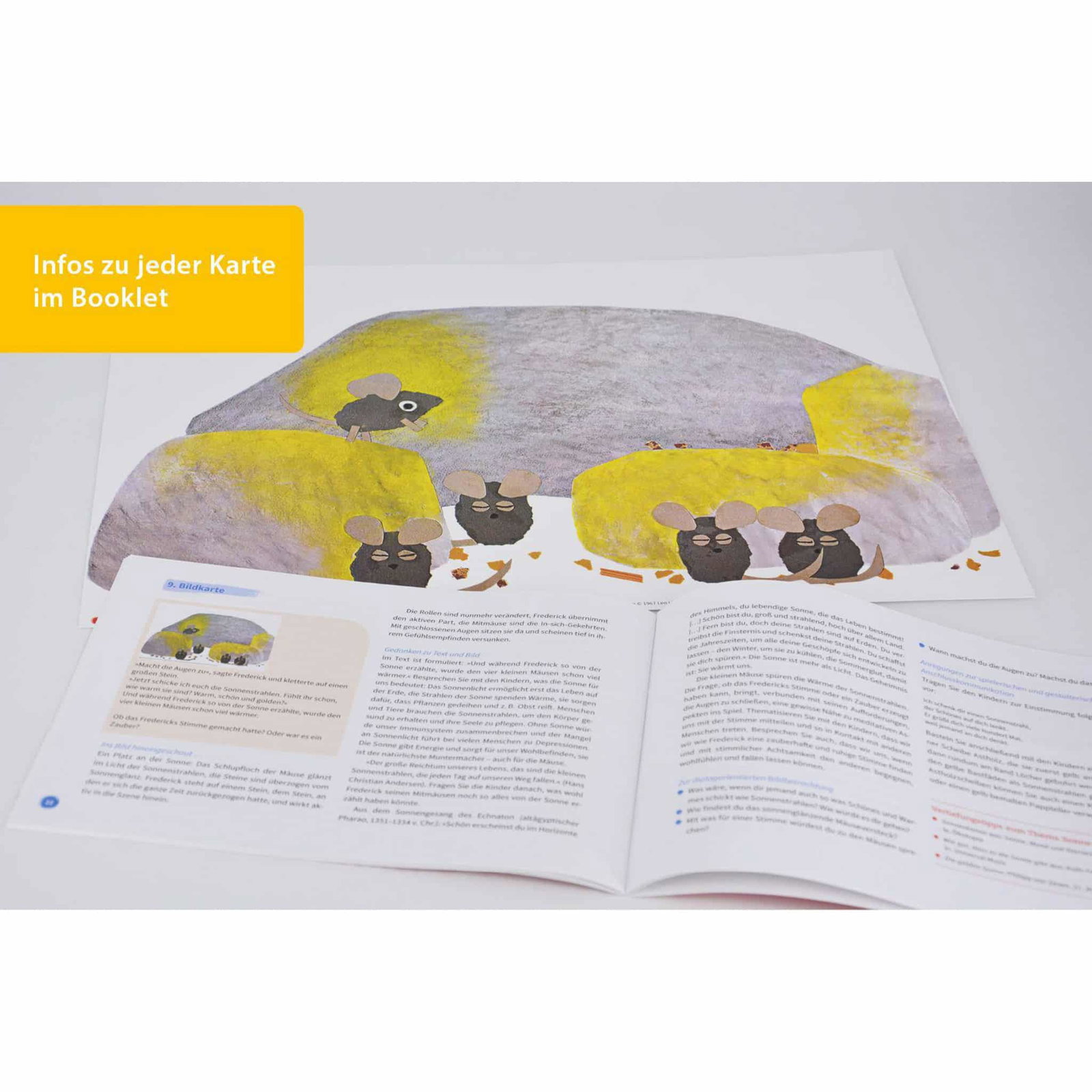Dieses Bilderbuchkarten-Set lädt dazu ein, die emotionale Tiefe und die lebensbejahende Botschaft der Geschichte zu ergründen. Die klaren, bunten Illustrationen ziehen die Kinder in ihren Bann und fördern die Vorstellungskraft. Mit jeder Bildkarte können die Kinder die Entwicklung der Geschichte mitverfolgen und die Abenteuer von Frederick und seinen Freunden nacherleben.