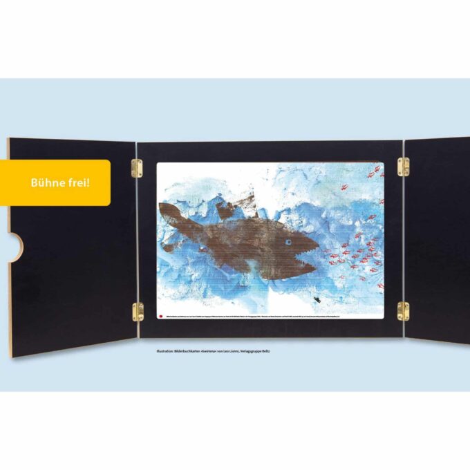 Willkommen zu den Bilderbuchkarten „Swimmy“ von Leo Lionni! Dieses zauberhafte Set umfasst 12 liebevoll gestaltete Bildkarten, die ideal für das Kamishibai-Erzähltheater geeignet sind. Mit einer Größe von DIN A3 (30,2 x 42,5 cm) bieten sie die perfekte Möglichkeit, um die Geschichte des kleinen Fisches Swimmy auf anschauliche Weise zu erzählen und die Fantasie der Kinder im Alter von 4 bis 7 Jahren anzuregen.