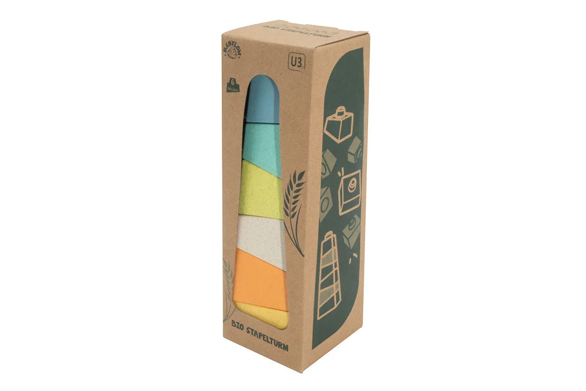 Das Besondere an diesem Stapelspaß ist das Material: Der Turm wird aus einem innovativen Biokunststoff gefertigt, der aus Weizenstroh gewonnen wird. Damit bietet er nicht nur eine angenehme, natürliche Haptik, sondern ist auch eine umweltfreundliche und schadstofffreie Alternative zu herkömmlichem Plastik. Ein Spielzeug, das die Kreativität und Motorik fördert und gleichzeitig Eltern das gute Gefühl gibt, eine nachhaltige Wahl für ihr Kind und die Umwelt zu treffen.