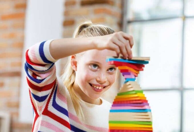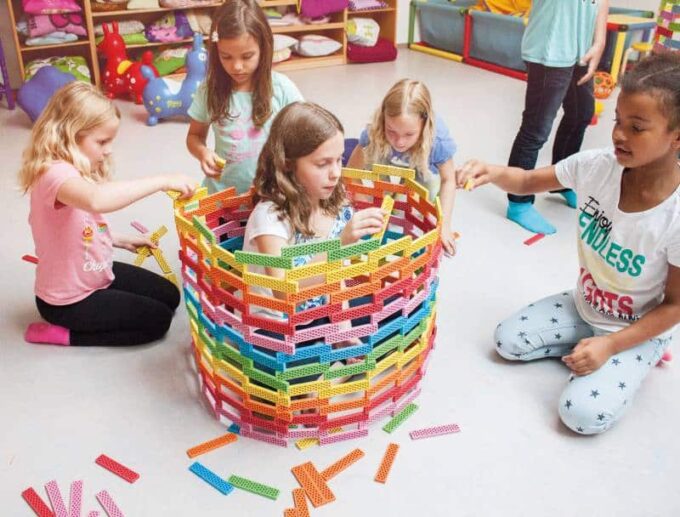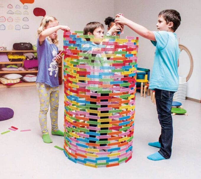 Das Set „Sunshine“ bietet eine kreative Farbpalette mit 120 gelben, 120 orangen, 120 roten, 120 rosa und 120 violetten Bausteinen. Die leuchtenden Farben regen die Sinne der Kinder an und fördern das kreative Spiel. Ob beim Bauen von fantastischen Gebäuden, Fahrzeugen oder neuen Welten, die Kinder können ihrer Vorstellungskraft freien Lauf lassen und gleichzeitig ihre Fähigkeiten im Stapeln, Zuordnen und Sortieren entwickeln.