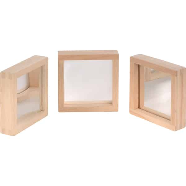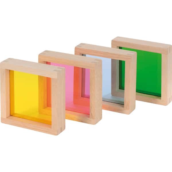 Dank des breiten Rahmens sind unsere Bausteine ideal für kleine Kinderhände, um sie zu greifen und die Welt durch ein anderes Licht zu sehen. Schauen Sie durch die farbigen Scheiben, und entdecken Sie wie sich durch Überlagerung neue Farben bilden. Beobachten Sie im Konkav- und Konvexspiegel, wie die gewohnte Form der Dinge in spannenden neuen Dimensionen erscheint!