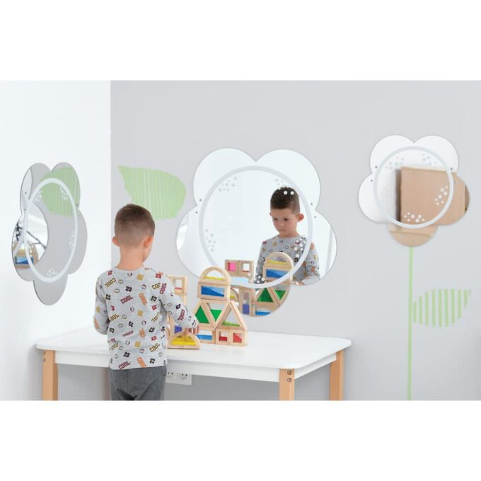 Fördern Sie mit unseren blumenförmigen Spiegeln spielerisch die Entwicklung der Kinder, während Sie gleichzeitig ihren Raum mit einem Blickfang verschönern.